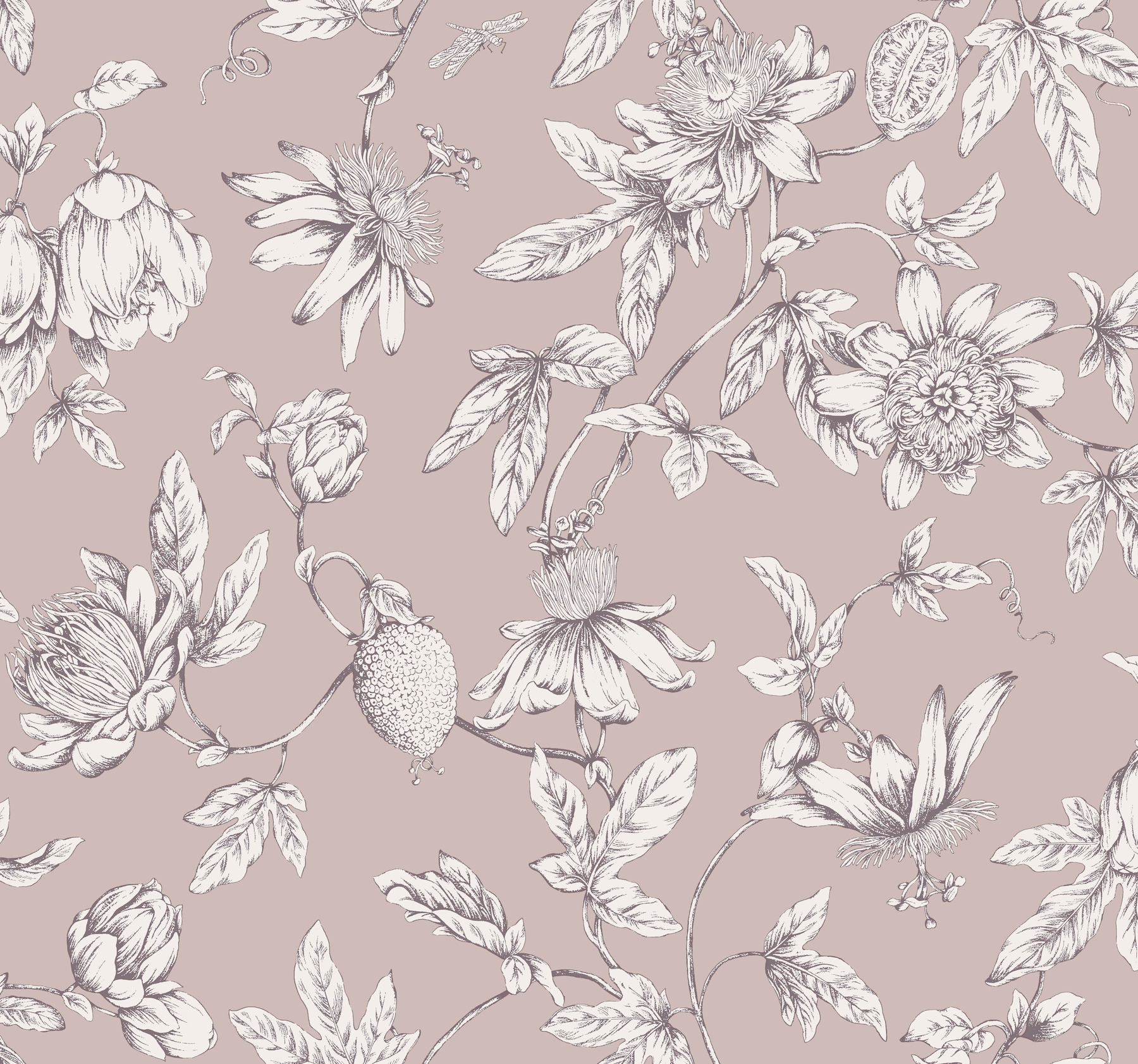 Passion Flower Toile Orchid Wallpaper Sample