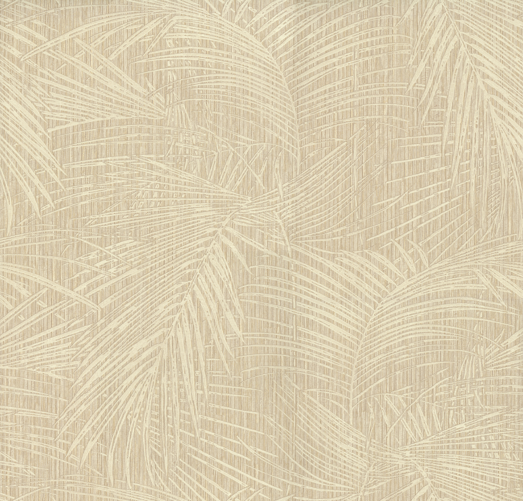 | Description + Bullets | The deeply etched fronds of Della Palm transform into a lush, contemporary canopy of leaves celebrating a luxury resort lifestyle. Featured here in wheat beige. Unpasted vinyl material; 37.4-in repeat, straight match; Scrubbable and strippable; 39.4-in by 33-ft long roll; Covers about 108 square feet |