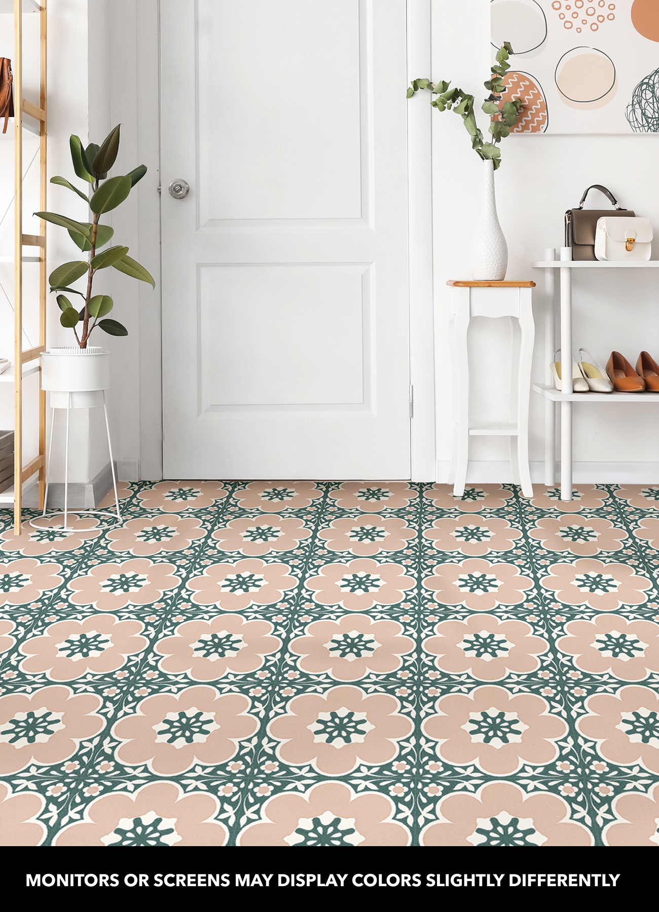 | Dynamic Description | The retro flower power of these peel and stick floor tiles will give your space a bright upgrade. A tan floral medallion is framed by charming black floral trim with white detailing. Black Daphne Peel and Stick Floor Tiles contains 20 tiles that measure 12 x 12 inches each. This product covers 20 square feet. |