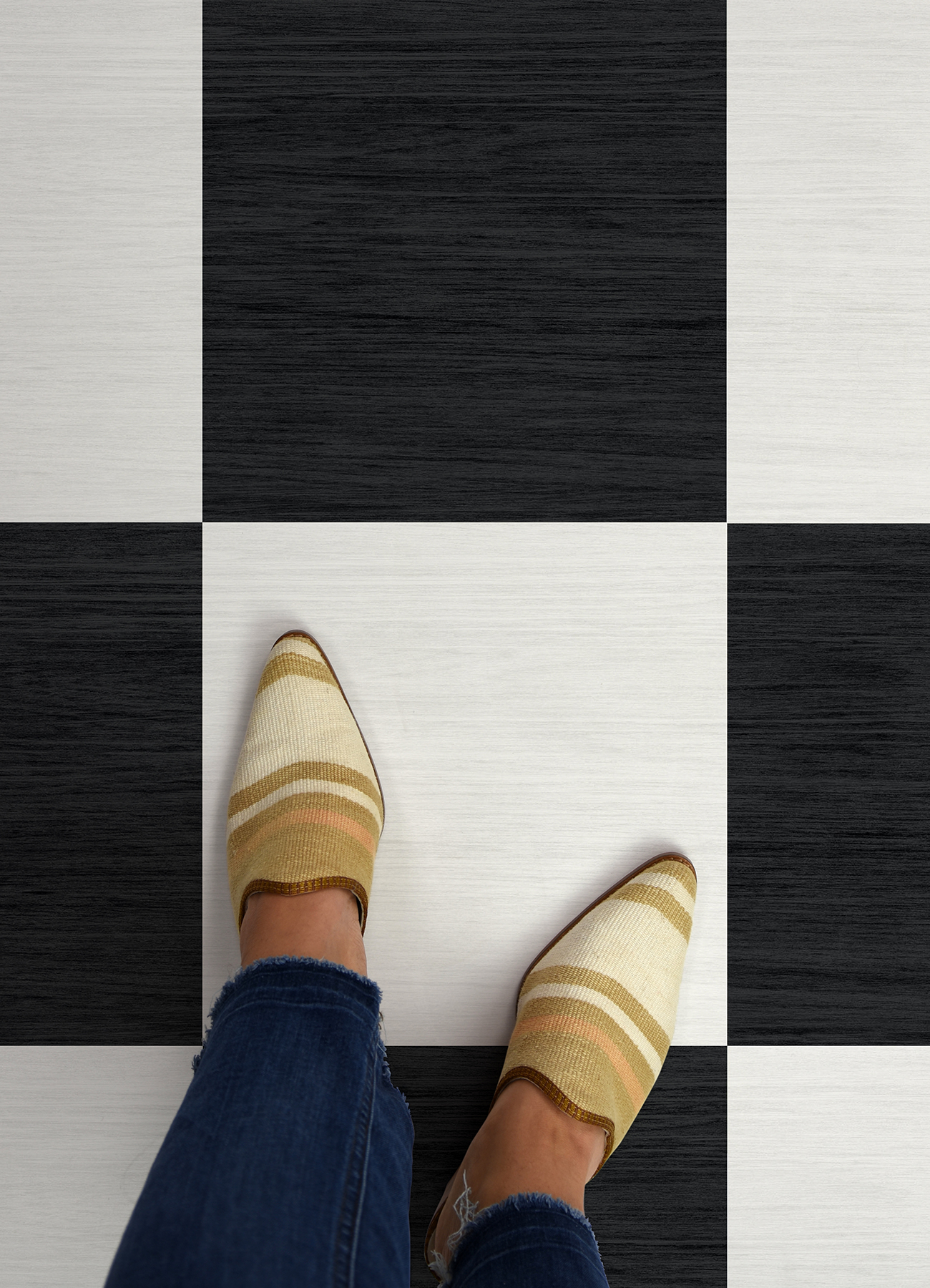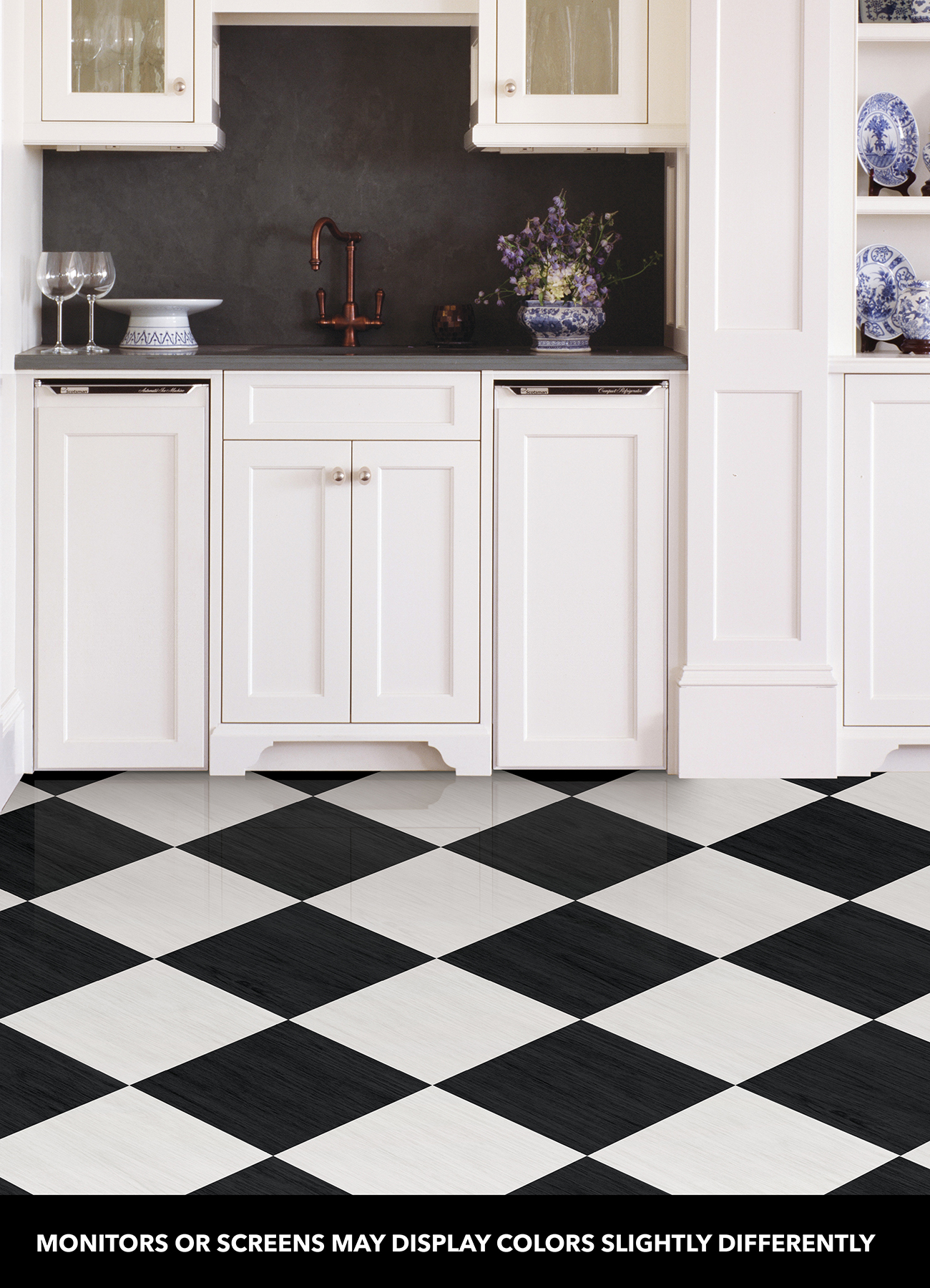 | Dynamic Description | Classic black and white checkered flooring never goes out of style. Designed by Chris Loves Julia, these wood-inspired peel and stick floor tiles will elevate and impress while adding traditional charm. Lawrence Black Peel and Stick Floor Tiles Set contains 20 tiles that each measure 12-in x 12-in. |
