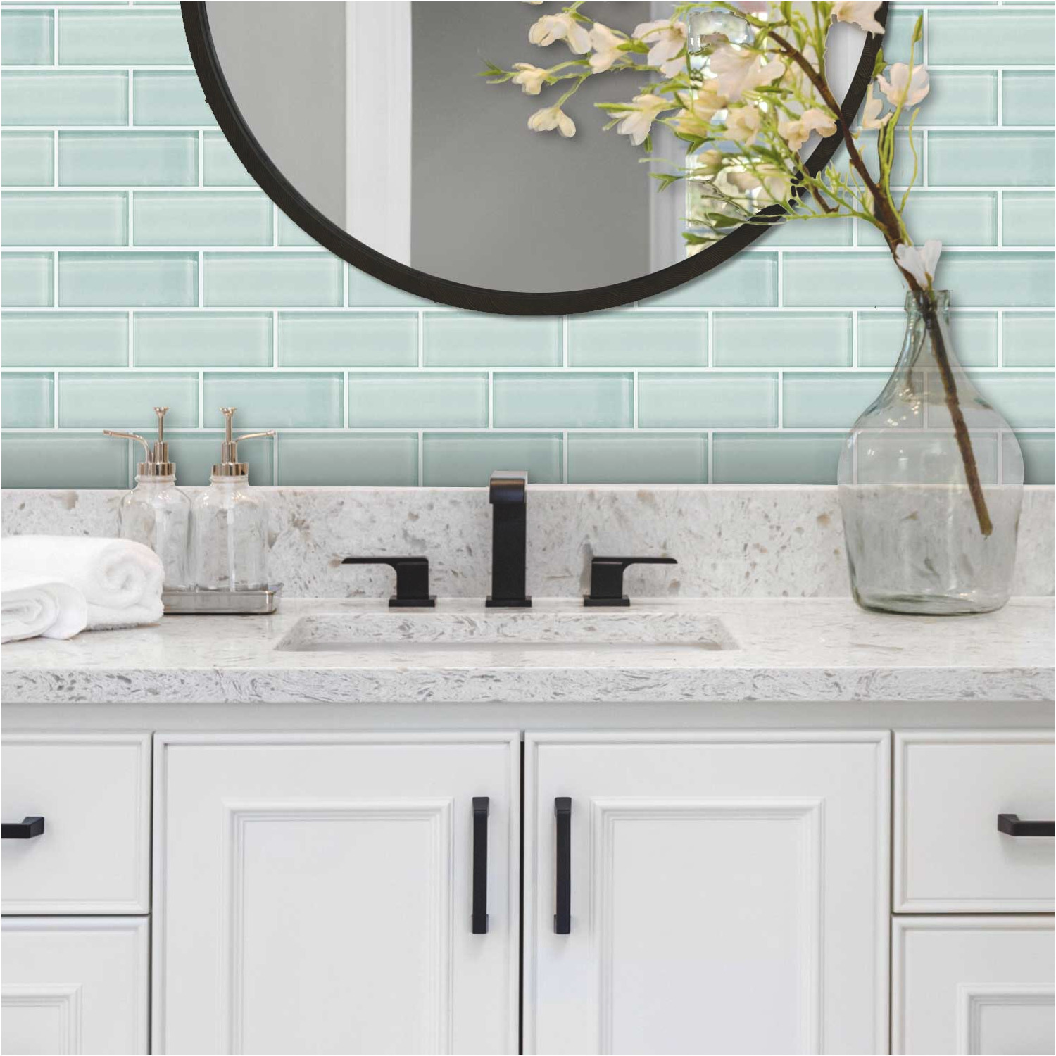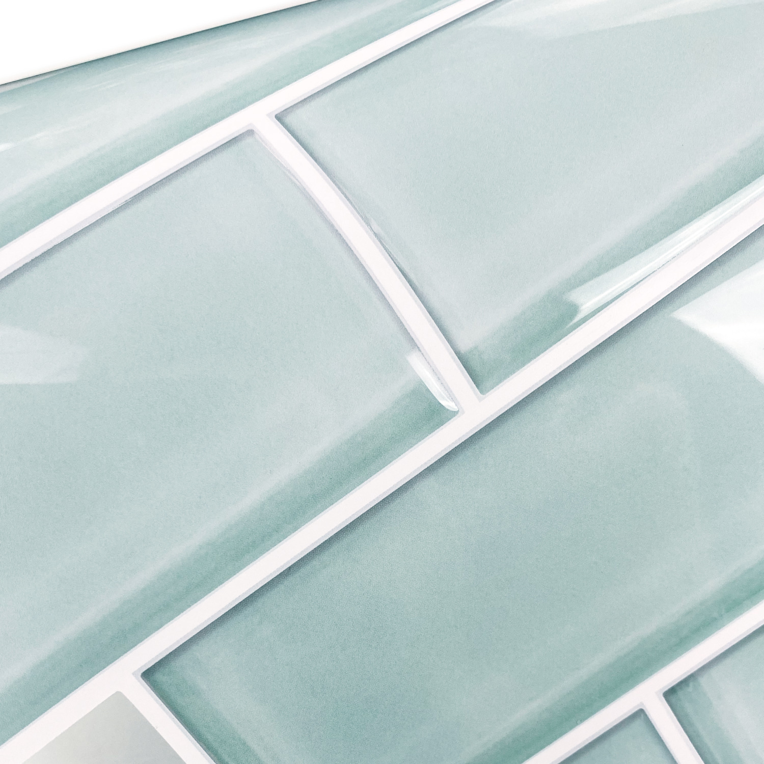 | Dynamic Description | Classic subway tile peel and stick backsplash is now available in aqua seaglass color option for on trend décor solutions. RoomMates’ Aqua Seaglass Subway peel and stick StickTiles have a 3D glossy finish, giving you the look and feel of genuine designer tiles. But unlike real tiles, you do not need heavy equipment (such as a wet saw) to cut them, nor do you need messy grout or additional paste. Simply use a utility knife or scissors to trim to size and work around difficult areas like corners or outlets… and just peel and stick! |