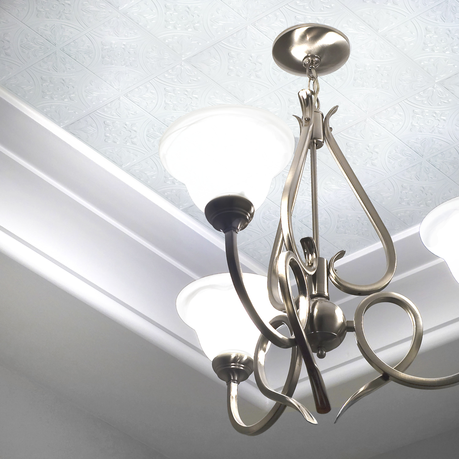| Dynamic Description | The classic beauty of Victorian Tin Tiles is interpreted into easy and affordable current design with these Bright White Tin Tiles peel and stick StickTiles from RoomMates. Originally designed to imitate the exquisite ceiling plasterwork of grand European homes, faux pressed tin designs are now fashionably used for art-work, back splashes, cabinet faces, wainscoting and more. The 3D/embossed design elements within the tile capture timeless motifs like the fleur de lis, acanthus scrolls, medallions and architectural gridwork. A crisp, bright white glossy finish makes these StickTiles the perfect accompaniment to any home décor. |