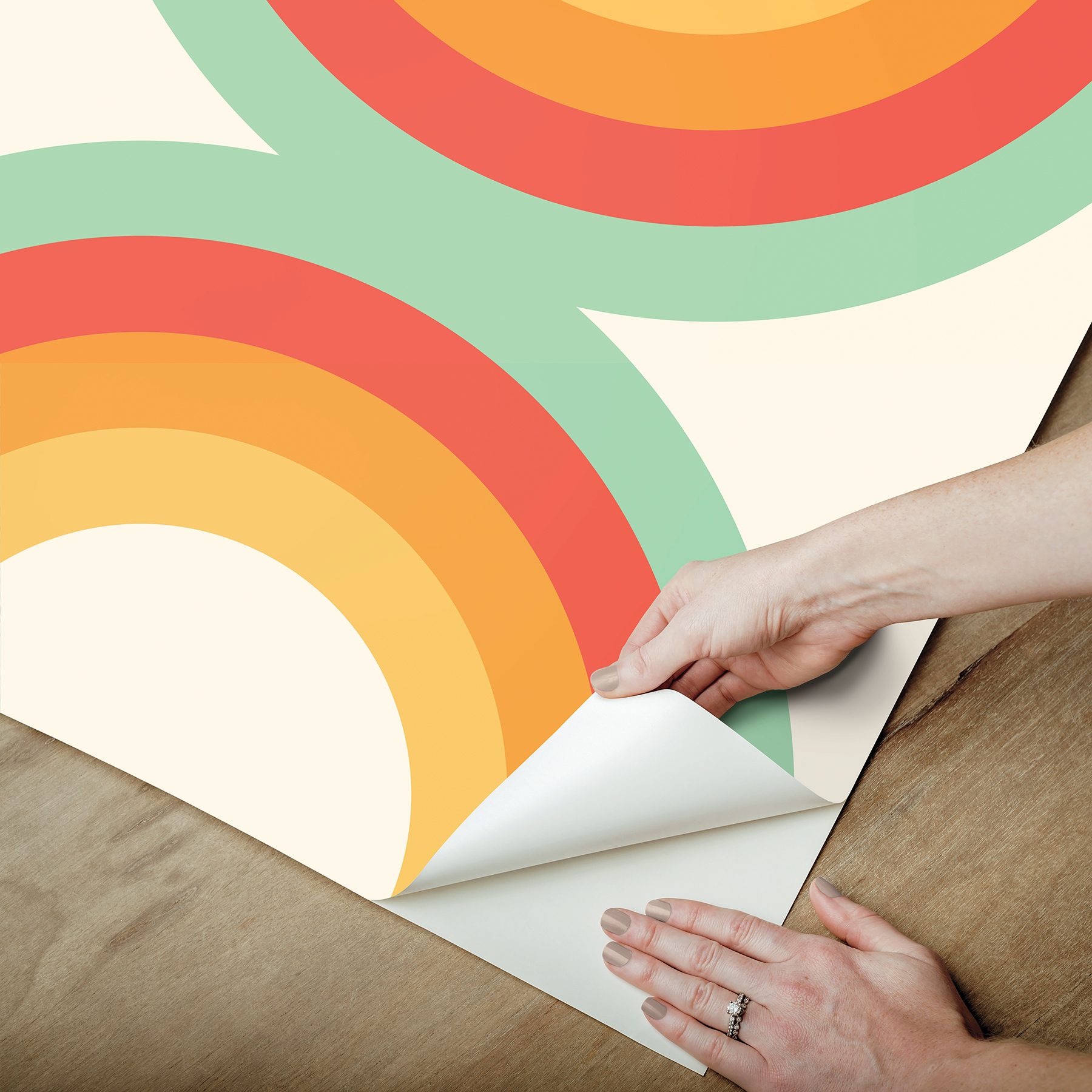 | Dynamic Description | Round, retro & ready to roll, this pattern by Very Gay Paint is the perfect way to give your space a lil’ razzle-dazzle. Featuring nostalgic, rink-ready orange and blue circles atop a white backdrop. Sir Culls Orange Peel and Stick Wallpaper comes on one roll that measures 20.5 inches wide by 18 feet long. |