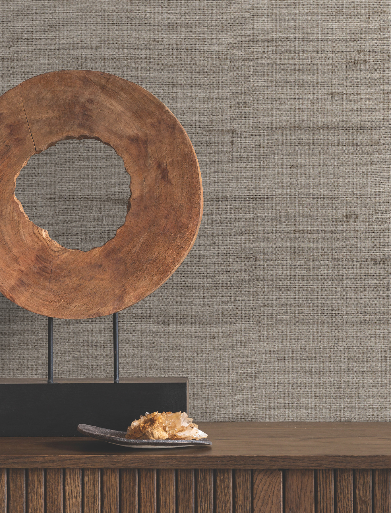 | Dynamic Description | Saori silk cloth, touched with subtle glimmer, captivates the senses in this distinctive natural woven, shown in sparkling taupe. This Saori Wallpaper measures approximately 36 inches wide by 24 feet long, measuring approximately 72 square feet per roll. The tea garden provides a meditative pathway from the outside world to inner tranquility. Experience the quiet luxury and uncompromising beauty within this second edition Tea Garden collection. |
