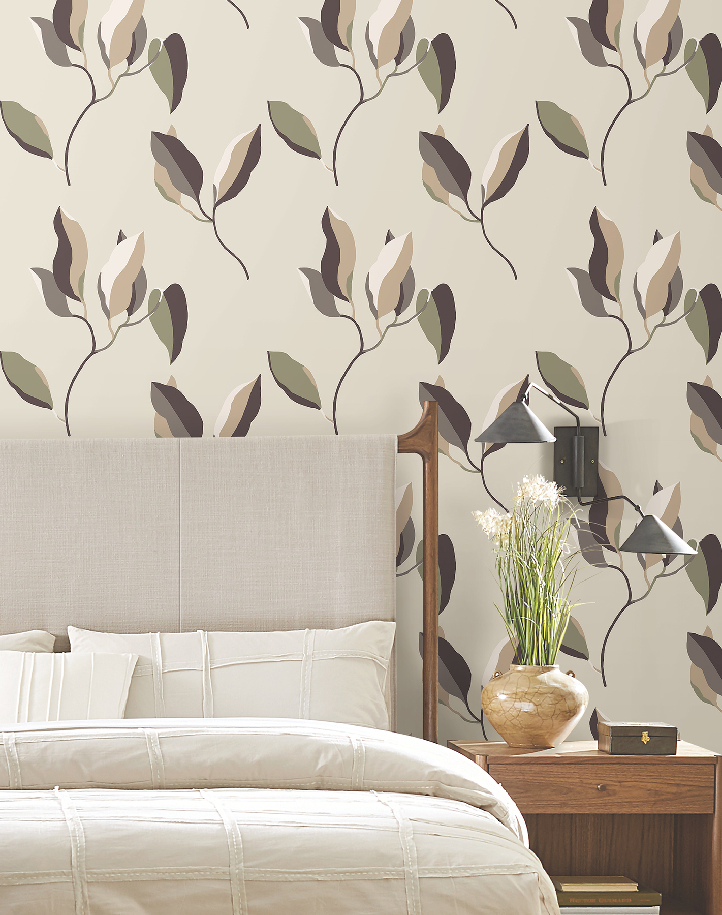 | Dynamic Description | Rich color blocking emphasizes the fluidity of form in pattern Brushwork Branches. Featured here in shades of brown, merlot, white, and spring green against beige. This Brushwork Branches Wallpaper measures approximately 27 inches wide by 27 feet long, measuring approximately 60.8 square feet per roll. Drawing inspiration from the gestural fluidity of turn of the century artwork, Artisan Studio offers an exploration of color, abstraction, and organic forms. |