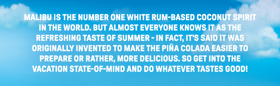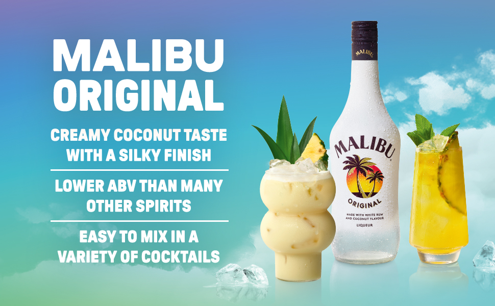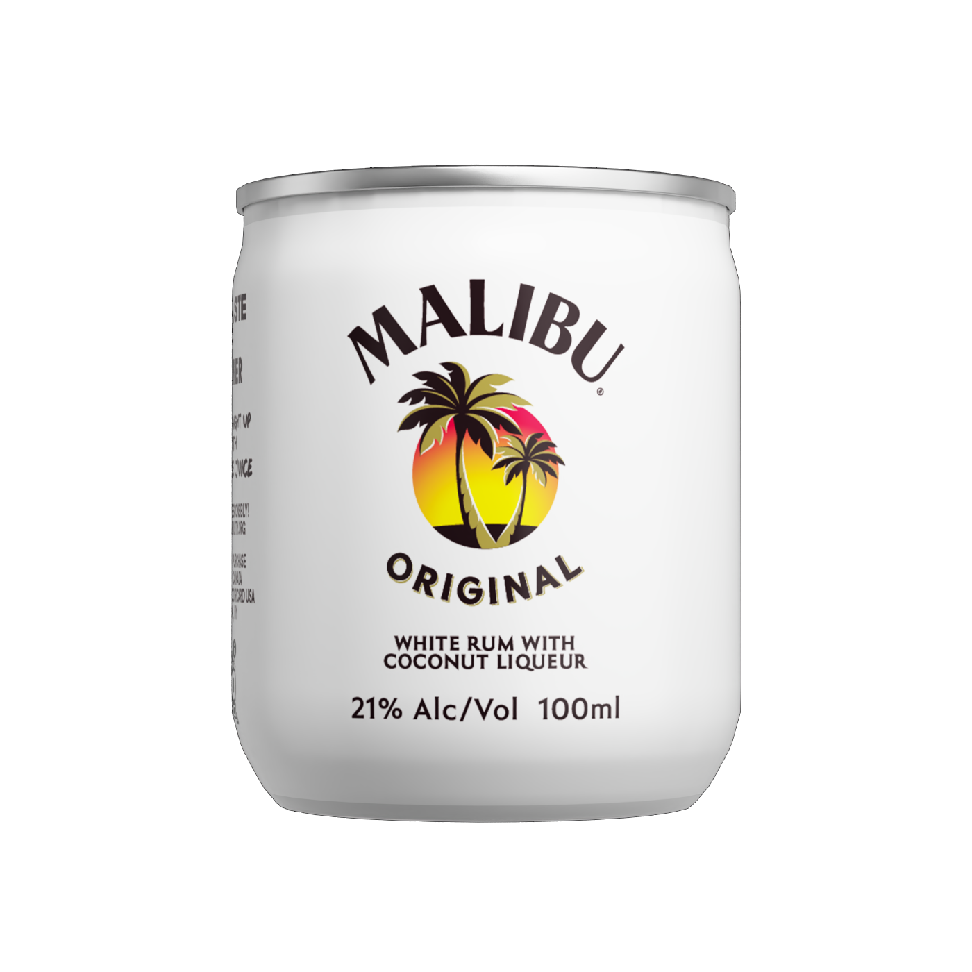 Product Title - Full (Computed) Malibu White Rum with Coconut Liqueur, 100 ml Can, 42 Proof SKU Name MALI 42 48/100 CN PT US Marketing Brand (Computed) Malibu Sub-Brand MALIBU REGULAR SKU 20001001 UPC 089540536637 GTIN 10089540536436 Country Of Origin United States Tasting Notes Full, rounded coconut aroma, lightly toasted CATEGORY RUM Product Sub-Category Rum Manufacturer Pernod Ricard Long Description Malibu is one of the world's leading flavored rum spirits, delivering a smooth and sweet taste that complements all your favorite refreshing cocktails. Savor the delightful fusion of carefully aged white rum and coconut liqueur, expertly blended to create a luscious and exotic flavor profile. Whether you're lounging by the pool, hosting a beach party, or simply unwinding after a long day, Malibu is your go-to companion for moments of relaxation and celebration. Blend this liqueur with fresh strawberries and ice for a flavorful Strawberry Daiquiri, shake with orange juice and grenadine to enjoy a fruity Caribbean Sunrise, or keep things simple and try Malibu mixed with cranberry juice or cola. Don't forget to sample the liquor in a Pina Colada—this iconic cocktail is the ideal way to enjoy Malibu and experience its sweet and refreshing taste. Enjoy Responsibly. Feature Bullet 1 WHITE RUM WITH COCONUT LIQUEUR: White rum and liqueur with a lightly toasted coconut aroma and a creamy coconut taste with vanilla custard notes in a convenient can Feature Bullet 2 INCLUDES: One 100 mL can of Malibu White Rum with Coconut Liqueur; 42 proof or 21% alcohol by volume; Please enjoy responsibly Feature Bullet 3 RUM DRINKS: Ideal in cocktails and alcohol drinks like the classic Pina Colada or mixed with pineapple or cola Feature Bullet 4 DELICATE BODY, SILKY FINISH: This coconut drink has a delicate body with a soft rum taste and a lasting silky finish Feature Bullet 5 EXPERTLY BLENDED: A delightful blend of perfectly aged white rum and coconut liqueur Feature Bullet 6 OCCASIONS: Malibu is the perfect complement to impromptu outdoor hangs and during good times Feature Bullet 7 GREAT FOR GATHERINGS: Makes a convenient addition to special occasions and celebrations like BBQs, pool parties, and birthdays Net Content (Computed) 100 ml Bottle Length 2.084 Bottle Width 2.084 Bottle Height 2.362 Bottles Per Case 48 Case Length 13.063 Case Width 8.813 Case Height 5.5 Case Weight 13.06 Proof 42