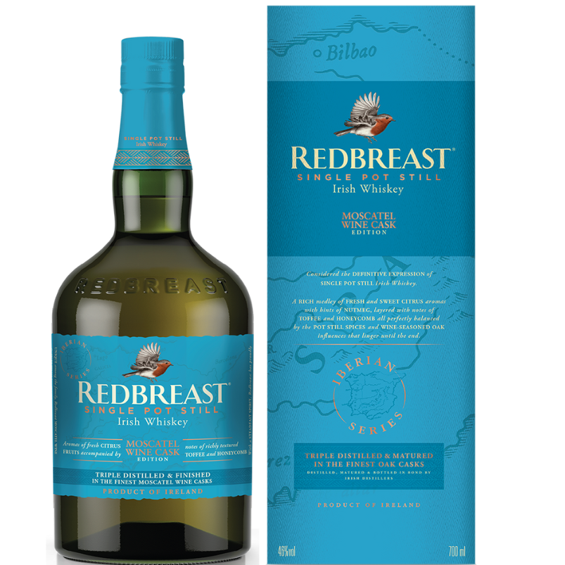 Brand Story The chairman of whiskey bonder W &A Gilbey goes for a walk in the woods one day. An avid bird-watcher, he peers through his binoculars and spots the bright red chest feathers of the Robin Redbreast. The chairman suddenly finds himself with the perfect name for what would become his most definitive whiskey, a name that first appears in August 1912: Redbreast. For more than a century, Redbreast has stayed true to the Irish Pot Still whiskey-making tradition: made in a single distillery using a mash bill of malted and unmalted barley, distilled in copper pot stills. This unique type of distilling creates a full-bodied, complex flavor with a creamy texture and notes of spice, fruit, and nuts Product Title - Full (Computed) Redbreast Moscatel Wine Case Edition, 750 ml Bottle, 92 Proof SKU Name REDBRST MOSCATEL 92 6/750 US Marketing Brand (Computed) Redbreast Sub-Brand REDBREAST MOSCATEL SKU 25B08001 UPC 840202288079 GTIN 00840202288086 Country Of Origin Ireland CATEGORY IRISH WHISKEY Manufacturer Pernod Ricard Long Description Following Redbreast tradition this whiskey is made from a mash of malted and unmalted barley triple distilled in copper pot stills and initially matured in Bourbon and sherry casks The fifth iteration in our famed series uses Moscatel wine casks from the hills of Malaga Spain to finish our signature Single Pot Still Irish Whiskey style Partnering with Bodegas Quitapenas family owned since 1880 to procure Spanish Moscatel casks known for their floral aromas accompanied with pineapple peach and notes of honey The wine is aged in American Oak for 24 months before the casks are emptied and transferred to Midleton Distillery for aging Here Redbreasts Single Pot Still Irish Whiskey has been maturing in these casks since 2024. Please taste responsibly Feature Bullet 1 REDBREAST IBERIAN SERIES: Celebrating the history of importing fortified wines since the late 1800s Feature Bullet 2 INCLUDES: One 750 mL bottle of Redbreast Moscatel Limited Edition is 92 proof or 46% ABV. Enjoy Responsibly Feature Bullet 3 CONSUMPTION TIP: Best enjoyed neat or over ice to savor the full flavor Feature Bullet 4 SIGNITURE: Aged in Moscatel wine casks from the hills of Málaga, Spain, to finish our signature Single Pot Still Iris Feature Bullet 5 LIQUID: made from malted & unmalted barley, triple distilled in copper pot stills, and initially matured in Bourbon and sherry casks Net Content (Computed) 750 ml Bottle Length 3.78 Bottle Width 3.78 Bottle Height 9.69 Bottles Per Case 6 Case Length 11.81 Case Width 7.87 Case Height 10.59 Case Weight 19.18 Proof 92