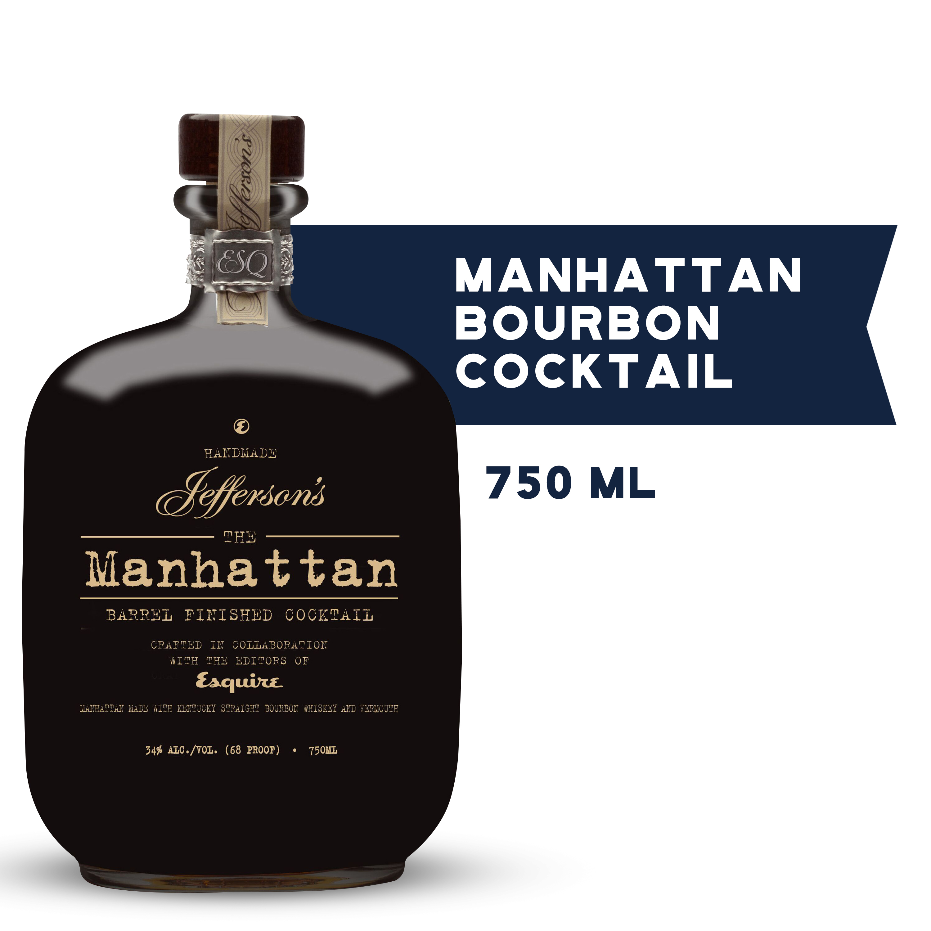 Jefferson's Barrel Aged Manhattan Bourbon Whiskey Cocktail, 750 ml Bottle, 68 Proof