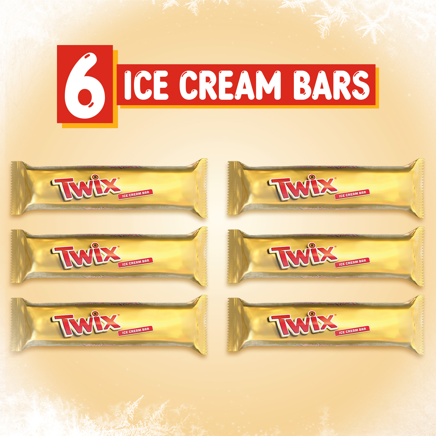 | Generic Bullet 1 | Contains (1) 11.58-ounce, 6-count pack of TWIX Caramel Vanilla Ice Cream Bars |