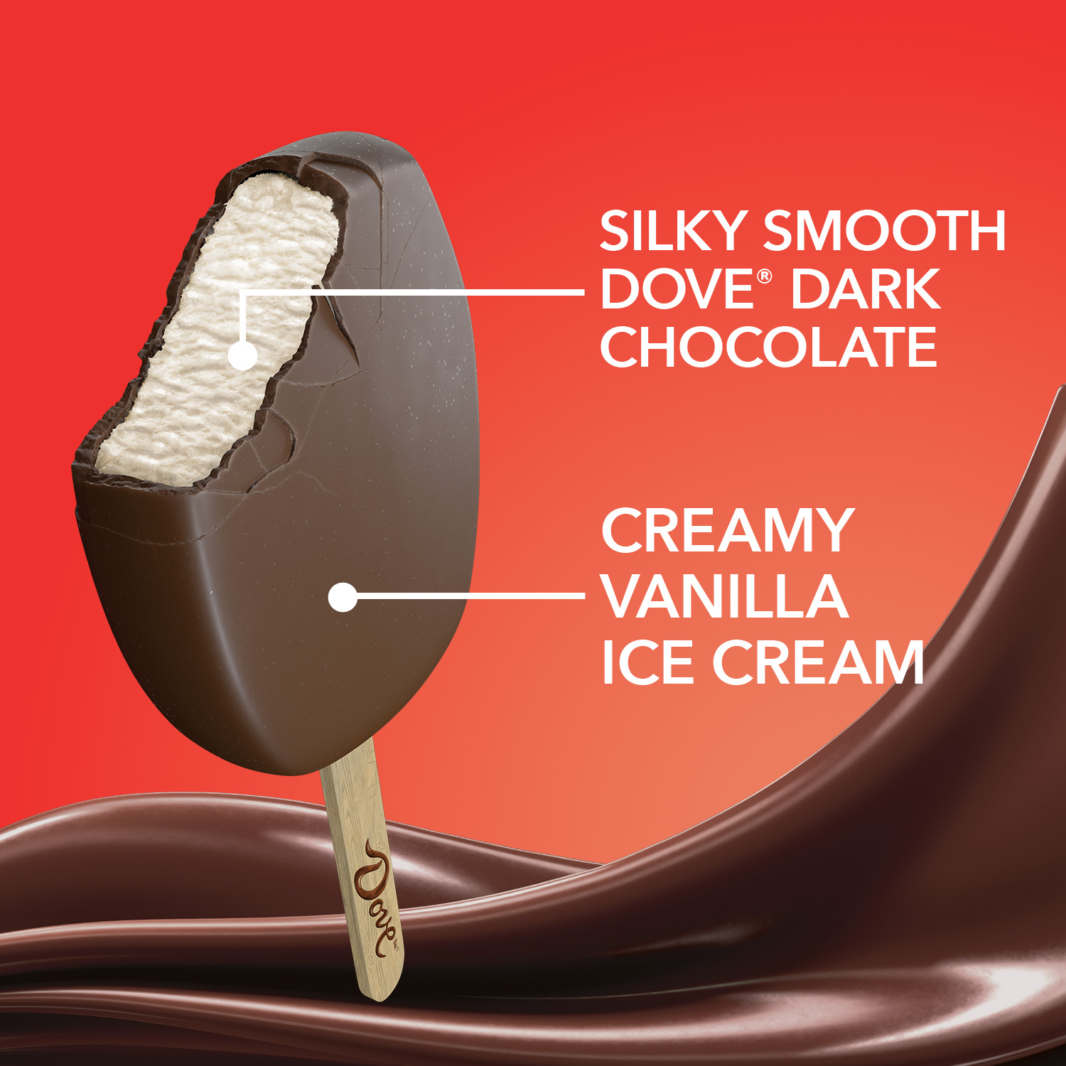 | Generic Bullet 2 | Unwind with a cool treat made with the creamiest vanilla ice cream, coated in thick, premium DOVE dark chocolate |