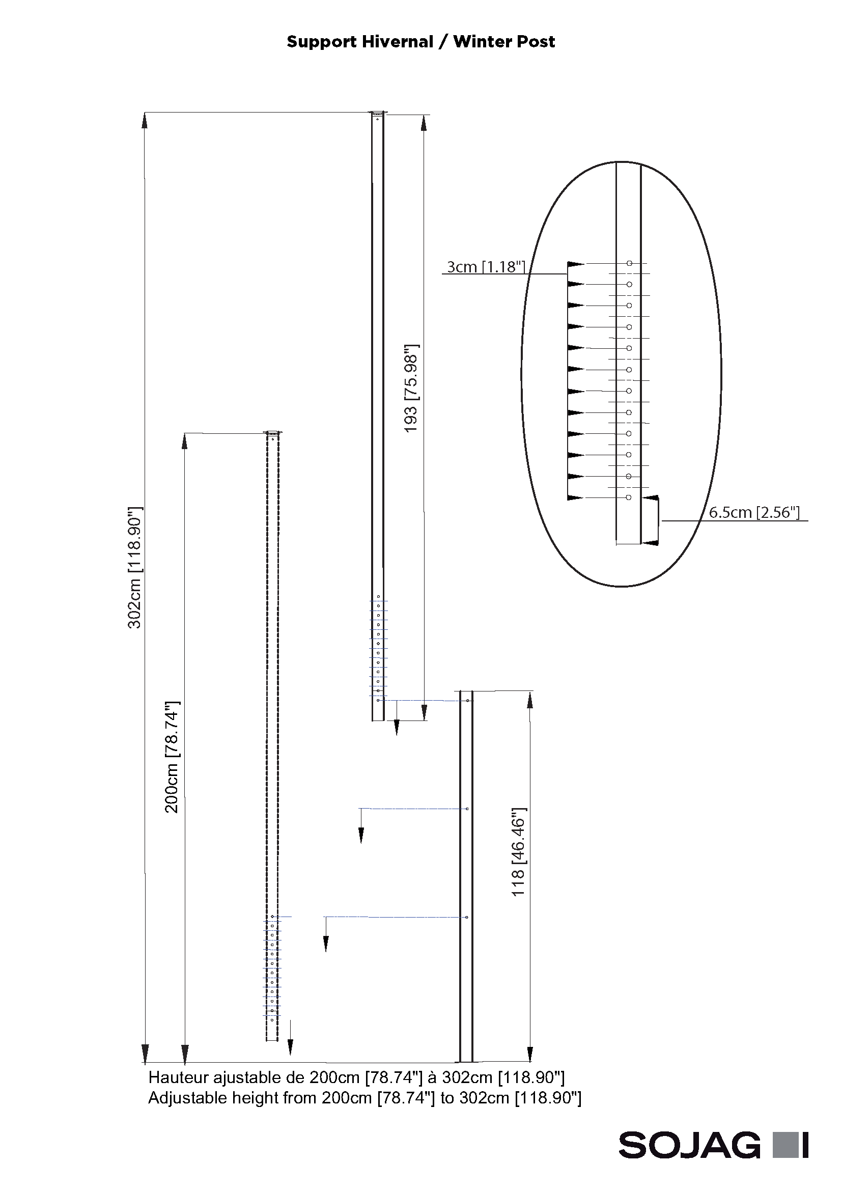 PART ID 099-8164145 BRAND Sojag UPC 772830164145 EU DROP SHIP Yes DISPLAY NAME - RETAIL Sojag Universal Winter Support Post, Gazebo Accessories CATEGORY CODE Gazebo Accessories LONG DESCRIPTION Add reinforcement to your shelter for the winter season. This extendable post can be positioned against the roof connector to help support your structure during the coldest weather. BULLET 1 DURABLE MATERIAL: Made of high-quality dark gray steel BULLET 2 MAXIMUM STABILITY: Provides extra stability for your Sojag gazebo BULLET 3 UNIVERSAL DESIGN: Compatible with most Sojag freestanding structures BULLET 4 EASY ANCHORING: Includes pre-drilled base for easy anchoring BULLET 5 STORAGE: Includes a convenient bag BULLET 6 SIZE RANGE: Adjustable from 78.7 to 118.9 inches BULLET 7 SIZE AND FIT: Carefully compare winter cover schematic with your gazebo’s overall dimensions before installation COUNTRY OF ORIGIN China FRAME MATERIAL N/A ASSEMBLY REQUIRED (Y/N) Yes WATERPROOF (Y/N) No WATER-RESISTANT (Y/N) No STORAGE BAG INCLUDED (Y/N) Yes RELATED ACCESSORIES #1 099-8164145 RELATED ACCESSORIES #2 N/A RELATED ACCESSORIES #3 N/A RELATED ACCESSORIES #4 N/A RELATED ACCESSORIES #5 N/A RELATED ACCESSORIES #6 N/A RELATED ACCESSORIES #7 N/A RELATED ACCESSORIES #8 N/A RELATED ACCESSORIES #9 N/A RELATED ACCESSORIES #10 N/A NOMINAL ASSEMBLED HEIGHT FT. 10 NOMINAL ASSEMBLED LENGTH FT. 0 NOMINAL ASSEMBLED WIDTH FT. 0 NOMINAL CONC IMPERIAL 10 ft NOMINAL ASSEMBLED HEIGHT METER 3.0 NOMINAL ASSEMBLED LENGTH METER 0.0 NOMINAL ASSEMBLED WIDTH METER 0.0 NOMINAL CONC METRIC 0.0 x 0.0 x 3.0 m WIND LOAD RATING (MPH) N/A WIND LOAD RATING (KM/HOUR) 0.00 SNOW LOAD RATING (PSF) N/A ITEM GROSS WEIGHT (PACKAGING INCLUDED) (KG.) 2.81 ITEM GROSS WEIGHT (PACKAGING INCLUDED) (LBS.) 6.2 WALL HEIGHT (IN) N/A ITEM NET WEIGHT - WITHOUT PACKAGING / ASSEMBLED (KG.) 2.0 ITEM NET WEIGHT - WITHOUT PACKAGING / ASSEMBLED (LBS.) 4.40 ASSEMBLED EXTERIOR DIMENSIONS DEPTH (CM) 3.81 ASSEMBLED EXTERIOR DIMENSIONS DEPTH (IN) 1.50 ASSEMBLED EXTERIOR DIMENSIONS HEIGHT (CM) 302.01 ASSEMBLED EXTERIOR DIMENSIONS HEIGHT (IN) 118.90 ASSEMBLED EXTERIOR DIMENSIONS WIDTH (CM) 3.81 ASSEMBLED EXTERIOR DIMENSIONS WIDTH (IN) 1.50 DOOR / ENTRANCE HEIGHT (IN) OUTSIDE ZIPPERS N/A FOUNDATION WIDTH (IN) N/A COLOR Black COVER COLOR N/A DOOR COLOR N/A DOOR JAMB COLOR N/A FRAME COLOR Dark Grey GABLE COLOR N/A ROOF COLOR N/A ROOF TRIM COLOR N/A TRACK COLOR N/A WALL COLOR N/A FREIGHT CLASS 175 SHIP METHOD (PARCEL OR LTL) PARCEL NMFC # 182130 # OF BOXES 1 FULL PALLET HEIGHT (FLOOR TO TOP) FULL PALLET CONFIGURATION (OUT OF WHSE OR BREESE PLANT ARROW ONLY) PALLET CUSTS 50.00 FULL PALLET LENGTH (LONGEST SIDE) FULL PALLET CONFIGURATION (OUT OF WHSE OR BREESE PLANT ARROW ONLY) PALLET CUSTS 80.00 FULL PALLET TOTAL WEIGHT FULL PALLET CONFIGURATION (OUT OF WHSE OR BREESE PLANT ARROW ONLY) PALLET CUSTS 441.00 FULL PALLET WIDTH (FRONT TO BACK) FULL PALLET CONFIGURATION (OUT OF WHSE OR BREESE PLANT ARROW ONLY) PALLET CUSTS 36.00 HEIGHT AS SHIPPED (INCLUDING PALLET IF APPLICABLE)(IN) 5.00 HEIGHT AS SHIPPED (INCLUDING PALLET IF APPLICABLE) METRIC (CM) 12.7 LENGTH AS SHIPPED (INCLUDING PALLET IF APPLICABLE)(IN) 77.00 LENGTH AS SHIPPED (INCLUDING PALLET IF APPLICABLE) METRIC (CM) 195.58 WEIGHT AS SHIPPED (INCLUDING PALLET IF APPLICABLE) (CONC) 6.2 lbs / 2.8 kg WEIGHT AS SHIPPED (INCLUDING PALLET IF APPLICABLE)(LBS) 6.20 WEIGHT AS SHIPPED (INCLUDING PALLET IF APPLICABLE) METRIC (KG) 2.81 WIDTH AS SHIPPED (INCLUDING PALLET IF APPLICABLE)(IN) 5.00 WIDTH AS SHIPPED (INCLUDING PALLET IF APPLICABLE) METRIC (CM) 12.7 UNITS PER 40' HCUBE CONTAINER 4350