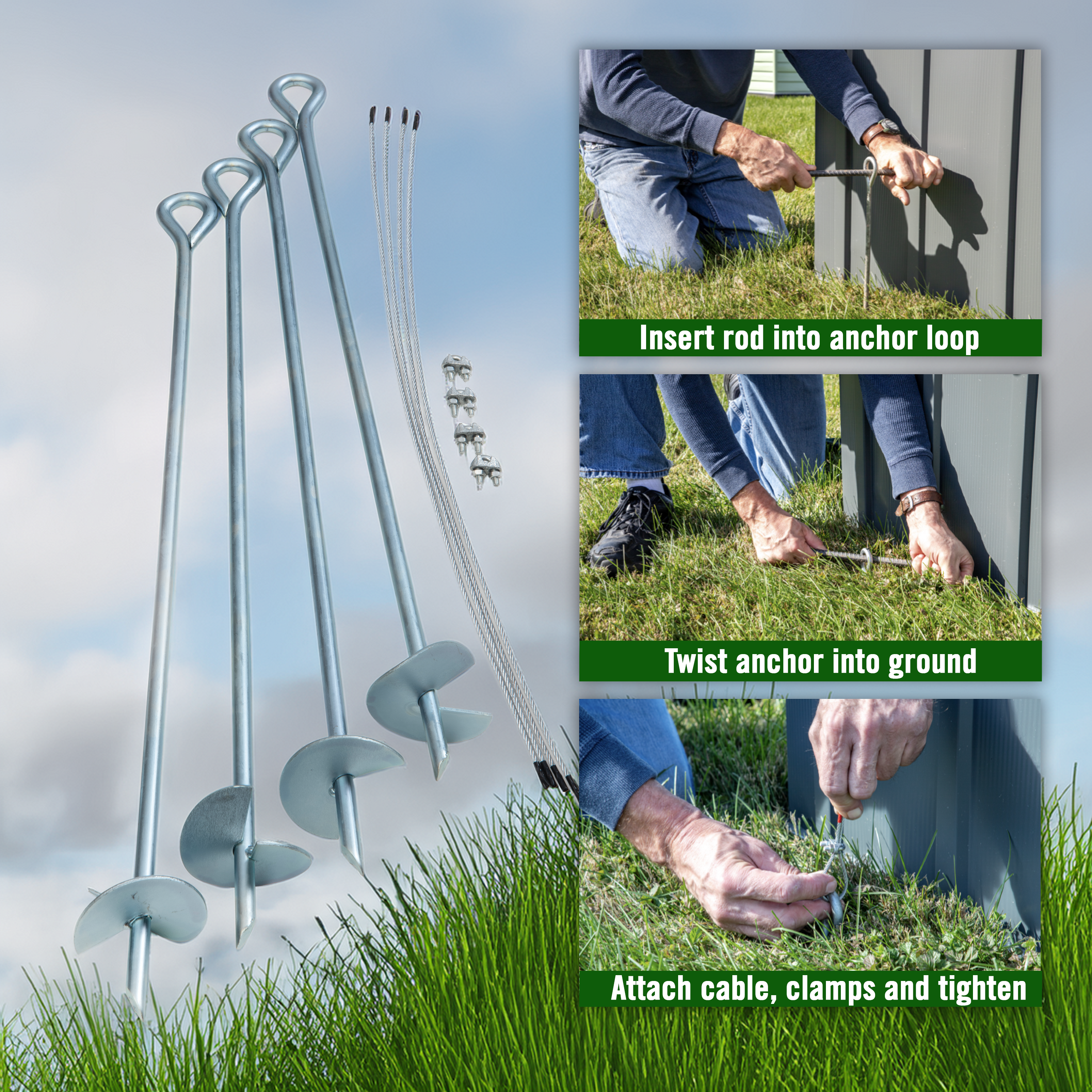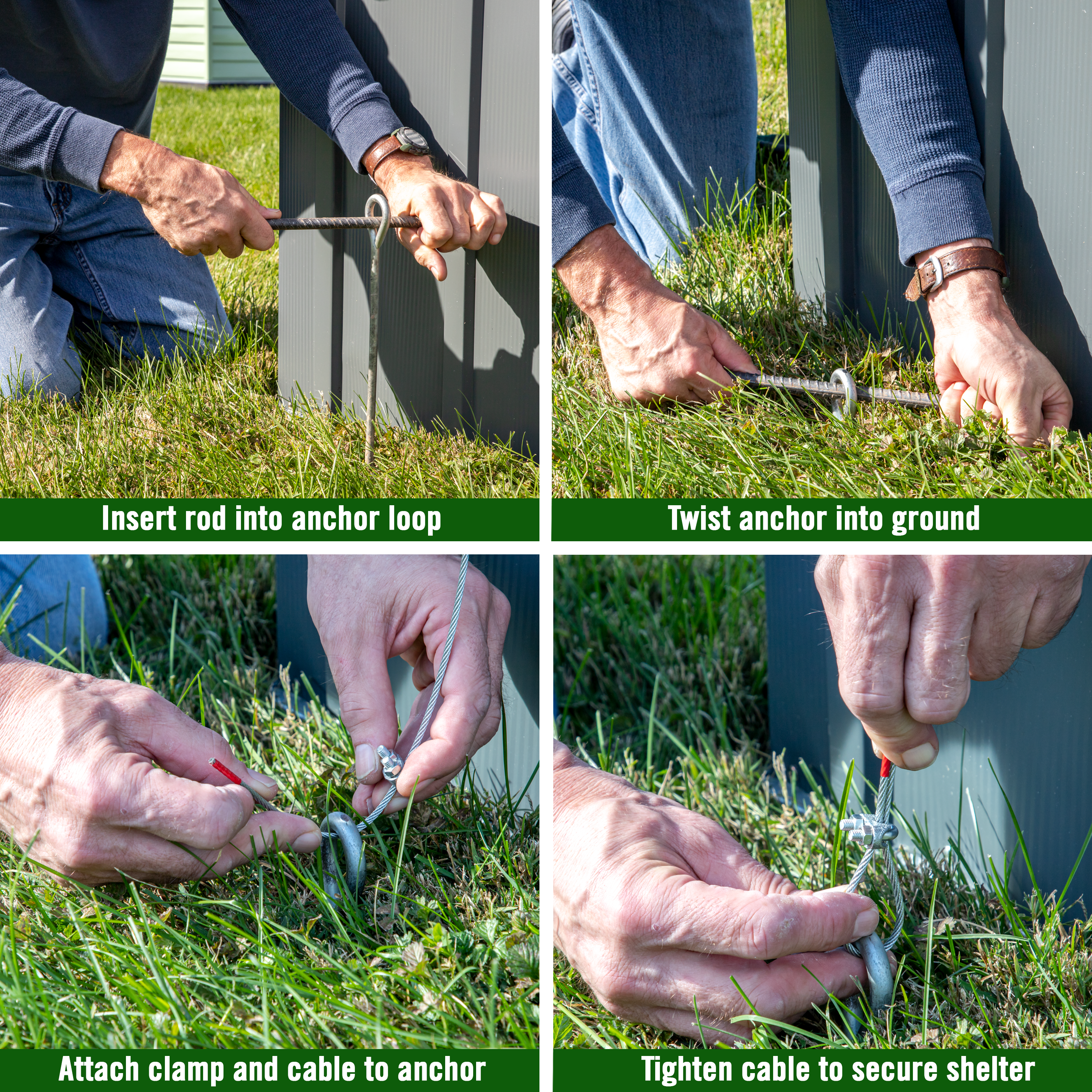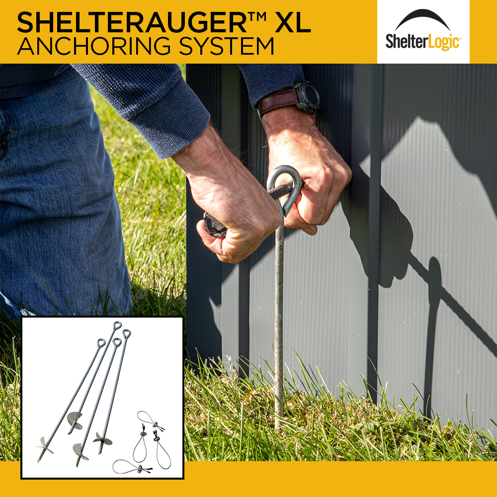 PART ID 10075 BRAND ShelterLogic SUB-BRAND ShelterAuger UPC 677599100758 DUTY % EU 6.3 EU DROP SHIP Yes DISPLAY NAME - RETAIL Earth Auger Anchor Kit CATEGORY CODE Garage & Shed Accessories LONG DESCRIPTION ShelterLogic ShelterAuger XL Anchors are ideal for securing your ShelterLogic or Arrow structure into a variety of surfaces and substrates. No holes, digging, or concrete required: these anchors have a corkscrew design that digs into grass or unpacked soil easily and holds tight to the earth. BULLET 1 Anchors allow quick, secure anchoring in all soil conditions including clay, hard packed, or rocky soil BULLET 2 Made for use with ShelterLogic and Arrow sheds, shelters, greenhouses, and garages BULLET 3 Heavy-duty rust-resistant galvanized steel designed for ground installation BULLET 4 These anchors are reusable: just unscrew the anchor to remove BULLET 5 No holes, digging, or concrete required BULLET 6 Cranking tool such as a steel pipe required to install anchors BULLET 7 Includes 4 cable clamps and 60 ft. cable for quick assembly BULLET 8 Proper anchoring is critical for safe, extended use of outdoor structures COUNTRY OF ORIGIN China FRAME MATERIAL Steel ASSEMBLY REQUIRED (Y/N) No WATERPROOF (Y/N) No WATER-RESISTANT (Y/N) No STORAGE BAG INCLUDED (Y/N) No NOMINAL ASSEMBLED HEIGHT METER 0.1 NOMINAL ASSEMBLED LENGTH METER 0.1 NOMINAL ASSEMBLED WIDTH METER 0.8 NOMINAL CONC METRIC 0.8 x 0.1 x 0.1 m WIND LOAD RATING (MPH) N/A WIND LOAD RATING (KM/HOUR) 0.00 SNOW LOAD RATING (PSF) N/A ITEM GROSS WEIGHT (PACKAGING INCLUDED) (KG.) 1596.64 ITEM GROSS WEIGHT (PACKAGING INCLUDED) (LBS.) 3520 WALL HEIGHT (CM) 0.0 WALL HEIGHT (IN) 0.00 ITEM NET WEIGHT - WITHOUT PACKAGING / ASSEMBLED (KG.) 3.63 ITEM NET WEIGHT - WITHOUT PACKAGING / ASSEMBLED (LBS.) 8.00 ASSEMBLED EXTERIOR DIMENSIONS DEPTH (CM) 7.62 ASSEMBLED EXTERIOR DIMENSIONS DEPTH (IN) 3.00 ASSEMBLED EXTERIOR DIMENSIONS HEIGHT (CM) 13.34 ASSEMBLED EXTERIOR DIMENSIONS HEIGHT (IN) 5.25 ASSEMBLED EXTERIOR DIMENSIONS WIDTH (CM) 81.61 ASSEMBLED EXTERIOR DIMENSIONS WIDTH (IN) 32.13 COLOR Black COVER COLOR Black ROOF COLOR N/A FREIGHT CLASS 65 SHIP METHOD (PARCEL OR LTL) PARCEL NMFC # 182130-09 # OF BOXES 1 FULL PALLET HEIGHT (FLOOR TO TOP) FULL PALLET CONFIGURATION (OUT OF WHSE OR BREESE PLANT ARROW ONLY) PALLET CUSTS 51.00 FULL PALLET LENGTH (LONGEST SIDE) FULL PALLET CONFIGURATION (OUT OF WHSE OR BREESE PLANT ARROW ONLY) PALLET CUSTS 49.00 FULL PALLET TOTAL WEIGHT FULL PALLET CONFIGURATION (OUT OF WHSE OR BREESE PLANT ARROW ONLY) PALLET CUSTS 892.00 FULL PALLET WIDTH (FRONT TO BACK) FULL PALLET CONFIGURATION (OUT OF WHSE OR BREESE PLANT ARROW ONLY) PALLET CUSTS 40.00 HEIGHT AS SHIPPED (INCLUDING PALLET IF APPLICABLE)(IN) 3.00 HEIGHT AS SHIPPED (INCLUDING PALLET IF APPLICABLE) METRIC (CM) 7.62 LENGTH AS SHIPPED (INCLUDING PALLET IF APPLICABLE)(IN) 33.07 LENGTH AS SHIPPED (INCLUDING PALLET IF APPLICABLE) METRIC (CM) 84.0 WEIGHT AS SHIPPED (INCLUDING PALLET IF APPLICABLE) (CONC) 7.2 lbs / 3.3 kg WEIGHT AS SHIPPED (INCLUDING PALLET IF APPLICABLE)(LBS) 7.23 WEIGHT AS SHIPPED (INCLUDING PALLET IF APPLICABLE) METRIC (KG) 3.28 WIDTH AS SHIPPED (INCLUDING PALLET IF APPLICABLE)(IN) 4.50 WIDTH AS SHIPPED (INCLUDING PALLET IF APPLICABLE) METRIC (CM) 11.43 UNITS PER 40' CONTAINER 4800 UNITS PER 40' HCUBE CONTAINER 5499 UNITS PER 20' CONTAINER 2262