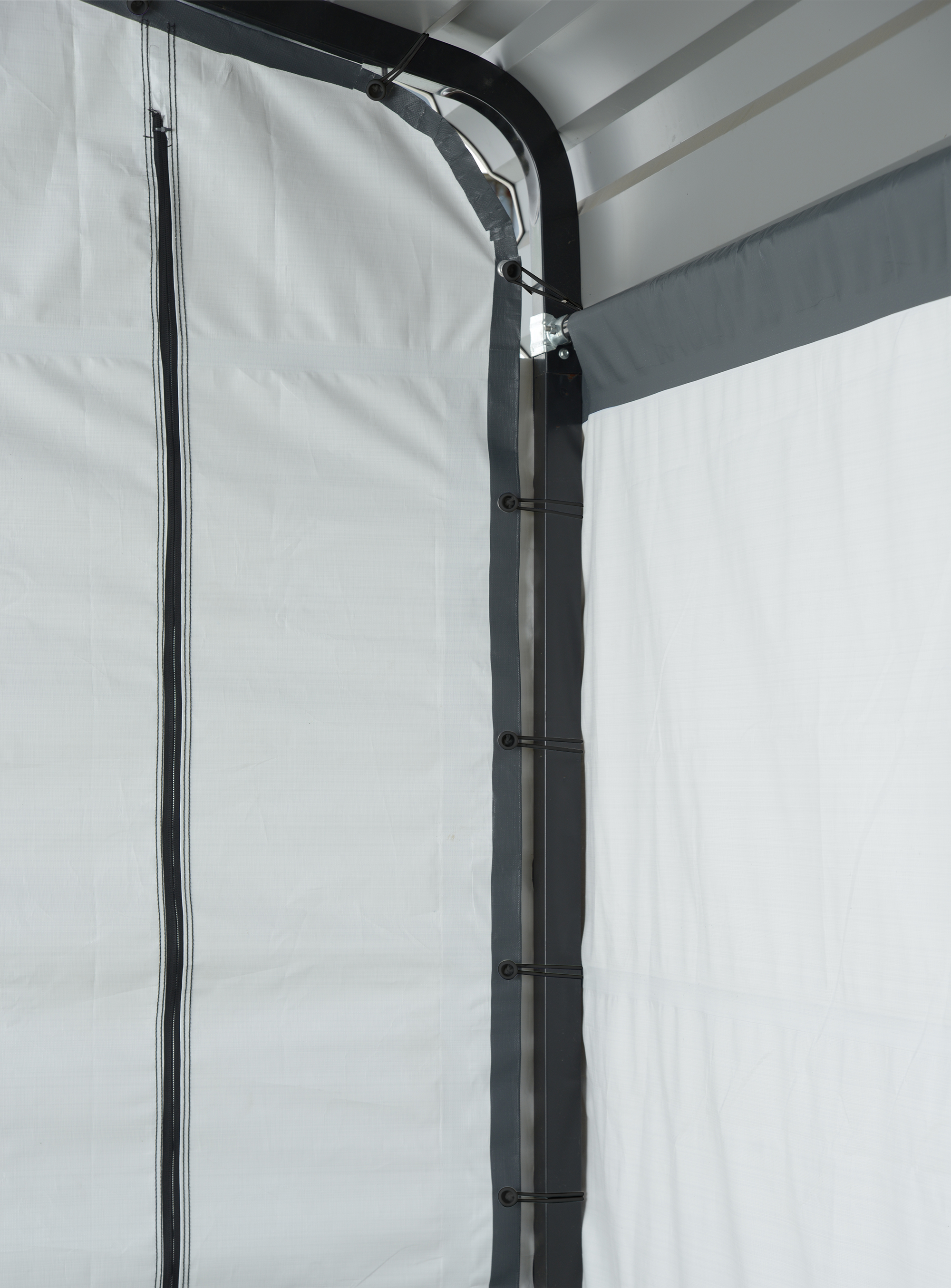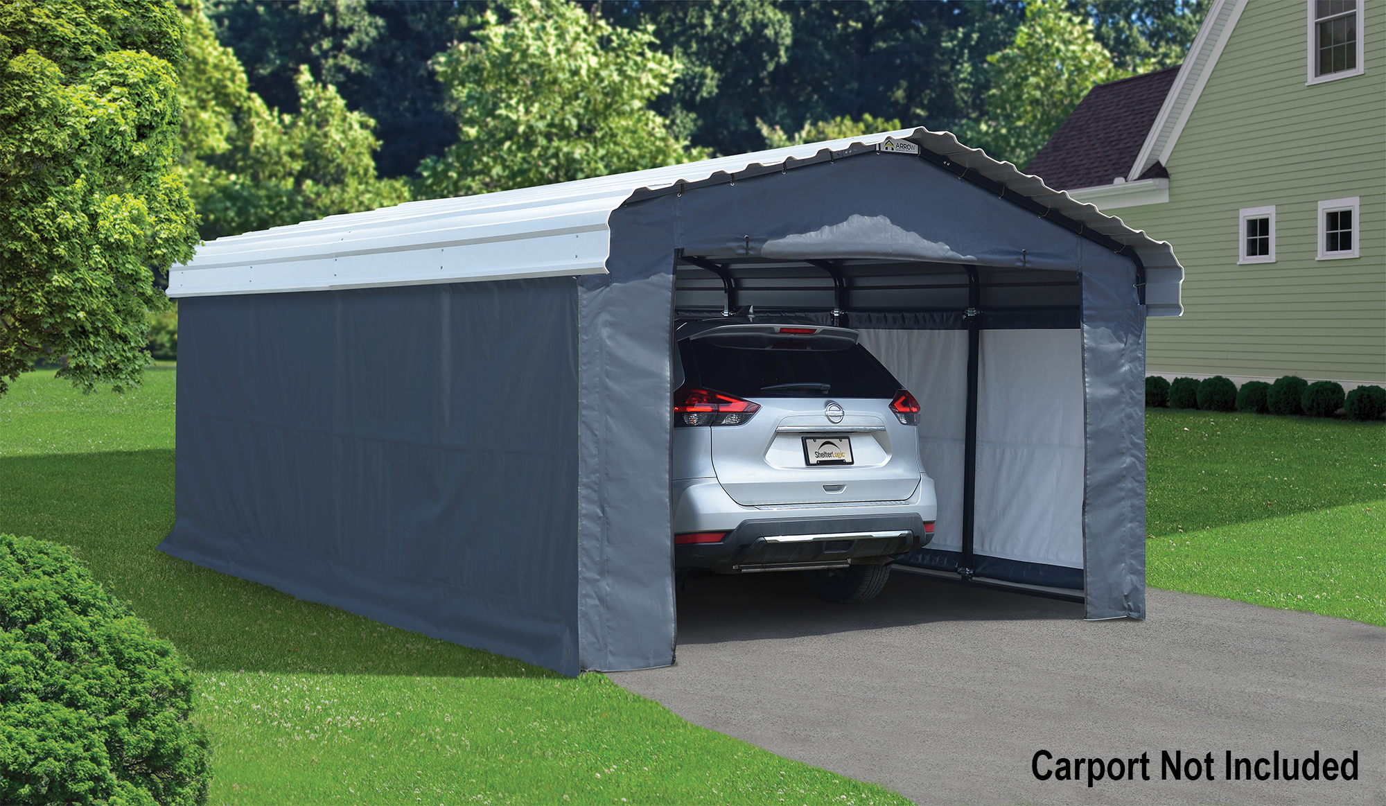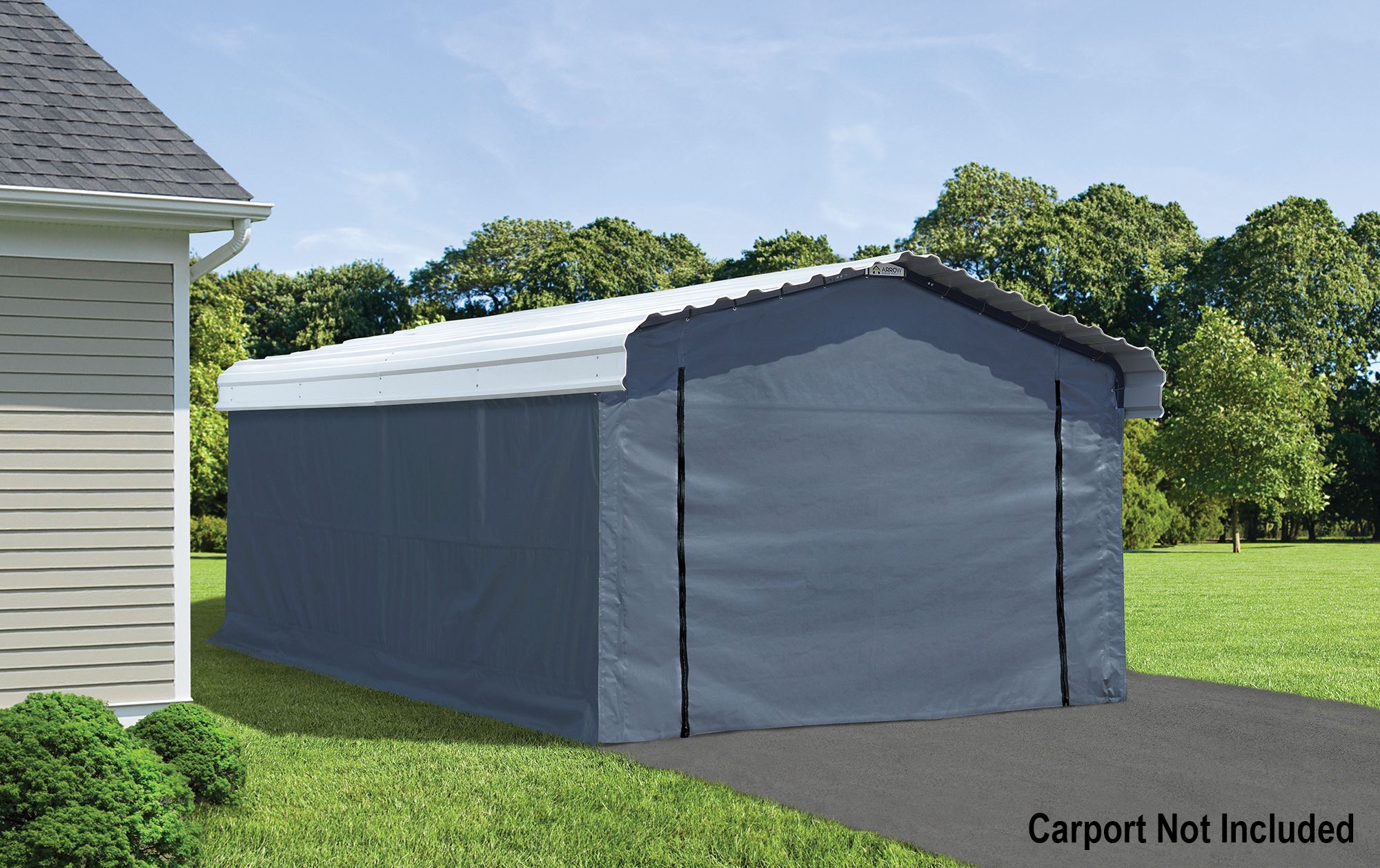 PART ID 10181 BRAND Arrow UPC 026862112163 DUTY % EU 2.7 EU DROP SHIP Yes DISPLAY NAME - RETAIL Carports Enclosure Kit For Galvanized Steel Carport, Fabric Carport Wall Panels, 12' X 20' X 7' CATEGORY CODE Carport Accessories LONG DESCRIPTION Convert your 12 ft. x 20 ft. Arrow Carport into a fully-enclosed structure easily with the Arrow Carport enclosure. These durable ripstop-tough wall panels attach quickly and easily to your steel carport unit and can be removed just as easily. The water-resistant triple-layer polyethylene fabric will keep your valuable items protected from inclement weather. The enclosure includes front and rear doors for easy drive-through access. This kit is compatible with the Pull-Eaze Roll-Up Door Kit. BULLET 1 This Enclosure Kit fits the Arrow Carport 12 x 20 x 7 ft BULLET 2 The fabric cover is UV treated inside and out to protect against fading, aging, yellowing, and mold BULLET 3 Features heat-sealed seams, which makes the cover 100% water resistant and prevents moisture damage to stored items BULLET 4 Front and rear door panels for convenient vehicle drive through BULLET 5 The Pull-Eaze Roll-Up Door Kit, model 10077, can be used with this carport enclosure, and is sold SEPARATELY COUNTRY OF ORIGIN China FRAME MATERIAL N/A ASSEMBLY REQUIRED (Y/N) Yes WATERPROOF (Y/N) Yes WATER-RESISTANT (Y/N) Yes STORAGE BAG INCLUDED (Y/N) No RELATED ACCESSORIES #1 53510 RELATED ACCESSORIES #2 10077 NOMINAL ASSEMBLED HEIGHT FT. 8 NOMINAL ASSEMBLED LENGTH FT. 20 NOMINAL ASSEMBLED WIDTH FT. 12 NOMINAL CONC IMPERIAL 12 x 20 x 8 ft NOMINAL ASSEMBLED HEIGHT METER 2.5 NOMINAL ASSEMBLED LENGTH METER 6.1 NOMINAL ASSEMBLED WIDTH METER 3.6 NOMINAL CONC METRIC 3.6 x 6.1 x 2.5 m WIND LOAD RATING (MPH) N/A WIND LOAD RATING (KM/HOUR) 0.00 SNOW LOAD RATING (PSF) N/A ITEM GROSS WEIGHT (PACKAGING INCLUDED) (KG.) 37.65 ITEM GROSS WEIGHT (PACKAGING INCLUDED) (LBS.) 83 WALL HEIGHT (CM) 0.0 WALL HEIGHT (IN) 0.00 ITEM NET WEIGHT - WITHOUT PACKAGING / ASSEMBLED (KG.) 34.93 ITEM NET WEIGHT - WITHOUT PACKAGING / ASSEMBLED (LBS.) 77.00 ASSEMBLED EXTERIOR DIMENSIONS DEPTH (CM) 609.09 ASSEMBLED EXTERIOR DIMENSIONS DEPTH (IN) 239.80 ASSEMBLED EXTERIOR DIMENSIONS HEIGHT (CM) 249.94 ASSEMBLED EXTERIOR DIMENSIONS HEIGHT (IN) 98.40 ASSEMBLED EXTERIOR DIMENSIONS WIDTH (CM) 365.0 ASSEMBLED EXTERIOR DIMENSIONS WIDTH (IN) 143.70 TOTAL STORAGE AREA (SQ/FT) 240.00 TOTAL STORAGE AREA (SQ/M) 21.6 TOTAL STORAGE VOLUME (CU. FT.) 1.11 TOTAL STORAGE VOLUME (CU.M) 0.031431648 DOOR / ENTRANCE HEIGHT (CM) OUTSIDE ZIPPERS 203.2 DOOR / ENTRANCE HEIGHT (IN) OUTSIDE ZIPPERS 80.00 COLOR Grey COVER COLOR N/A DOOR COLOR N/A DOOR JAMB COLOR N/A FRAME COLOR N/A GABLE COLOR N/A ROOF COLOR N/A ROOF TRIM COLOR N/A TRACK COLOR N/A WALL COLOR Grey FREIGHT CLASS 65 SHIP METHOD (PARCEL OR LTL) PARCEL NMFC # 182130 # OF BOXES 1 FULL PALLET HEIGHT (FLOOR TO TOP) FULL PALLET CONFIGURATION (OUT OF WHSE OR BREESE PLANT ARROW ONLY) PALLET CUSTS 44.96 FULL PALLET LENGTH (LONGEST SIDE) FULL PALLET CONFIGURATION (OUT OF WHSE OR BREESE PLANT ARROW ONLY) PALLET CUSTS 48.00 FULL PALLET TOTAL WEIGHT FULL PALLET CONFIGURATION (OUT OF WHSE OR BREESE PLANT ARROW ONLY) PALLET CUSTS 726.00 FULL PALLET WIDTH (FRONT TO BACK) FULL PALLET CONFIGURATION (OUT OF WHSE OR BREESE PLANT ARROW ONLY) PALLET CUSTS 40.00 HEIGHT AS SHIPPED (INCLUDING PALLET IF APPLICABLE)(IN) 9.84 HEIGHT AS SHIPPED (INCLUDING PALLET IF APPLICABLE) METRIC (CM) 24.99 LENGTH AS SHIPPED (INCLUDING PALLET IF APPLICABLE)(IN) 28.35 LENGTH AS SHIPPED (INCLUDING PALLET IF APPLICABLE) METRIC (CM) 72.01 WEIGHT AS SHIPPED (INCLUDING PALLET IF APPLICABLE) (CONC) 83.0 lbs / 37.7 kg WEIGHT AS SHIPPED (INCLUDING PALLET IF APPLICABLE)(LBS) 83.00 WEIGHT AS SHIPPED (INCLUDING PALLET IF APPLICABLE) METRIC (KG) 37.65 WIDTH AS SHIPPED (INCLUDING PALLET IF APPLICABLE)(IN) 22.05 WIDTH AS SHIPPED (INCLUDING PALLET IF APPLICABLE) METRIC (CM) 56.01 UNITS PER 40' CONTAINER 530 (Floor Loaded China)