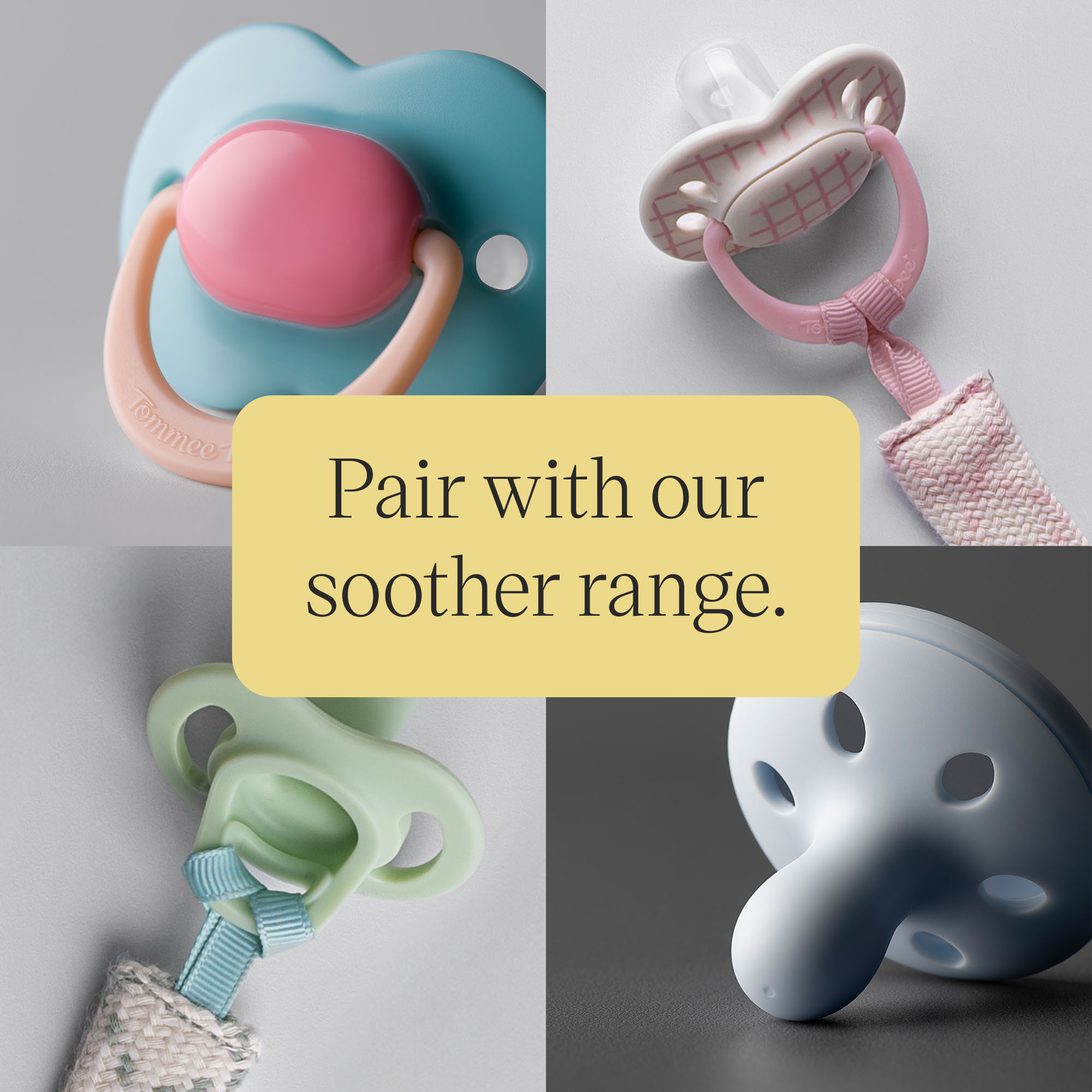 SKU 423780 Description TT 1X COMFORTER CLIP CREAM Colour Multi Need State Comfort Category Soother Sub-Category Soother Holders Product Range Soother Holder Product Title Tommee Tippee Comforter Clip, 0+ months, 1 Pack, Organic Cotton, Compatible with Any Soother, Loop-on Design, Natural Beech Wood and Stainless Steel Soother Clip, Cream DTC Short Product Description This stylish clip is made to keep baby's dummy close. The strap is woven from soft organic cotton* and safely attaches to their clothes or bib using a secure clip, so their soother is always easy to reach and ready to soothe. Long Product Description This stylish clip is made to keep baby's dummy close. The strap is woven from soft organic cotton* and safely attaches to their clothes or bib using a secure clip, so their soother is always easy to reach and ready to soothe. • Easy loop-on design that's compatible with most soothers • Organic cotton* strap that’s soft for baby's comfort, and decorated to suit your style • Natural beech wood and nickel-free stainless steel clip • Safe for use from 0 months plus, this dummy clip measures under 22cm to meet all mandatory standards • BPA-free and BPS free *Sourced from GOTS certified supplier. Key Features Compatible comfort: The easy loop-on design of this clip means that it's compatible with most soothers Woven cotton in coordinating colours: The organic cotton* strap is soft for baby's comfort, and decorated in trend-led patterns and shades to suit your style Secure clip: The natural beech wood and nickel-free stainless steel clip simply attaches to baby's clothes or bib to keep their soother within reach For safe soothing from birth: This dummy clip measures under 22cm to meet all mandatory standards, and is designed to use from 0 months plus Baby safe: This clip-on soother holder is 100% BPA and BPS free Key Features Split - Compatible comfort: The easy loop-on design of this clip means that it's compatible with most soothers