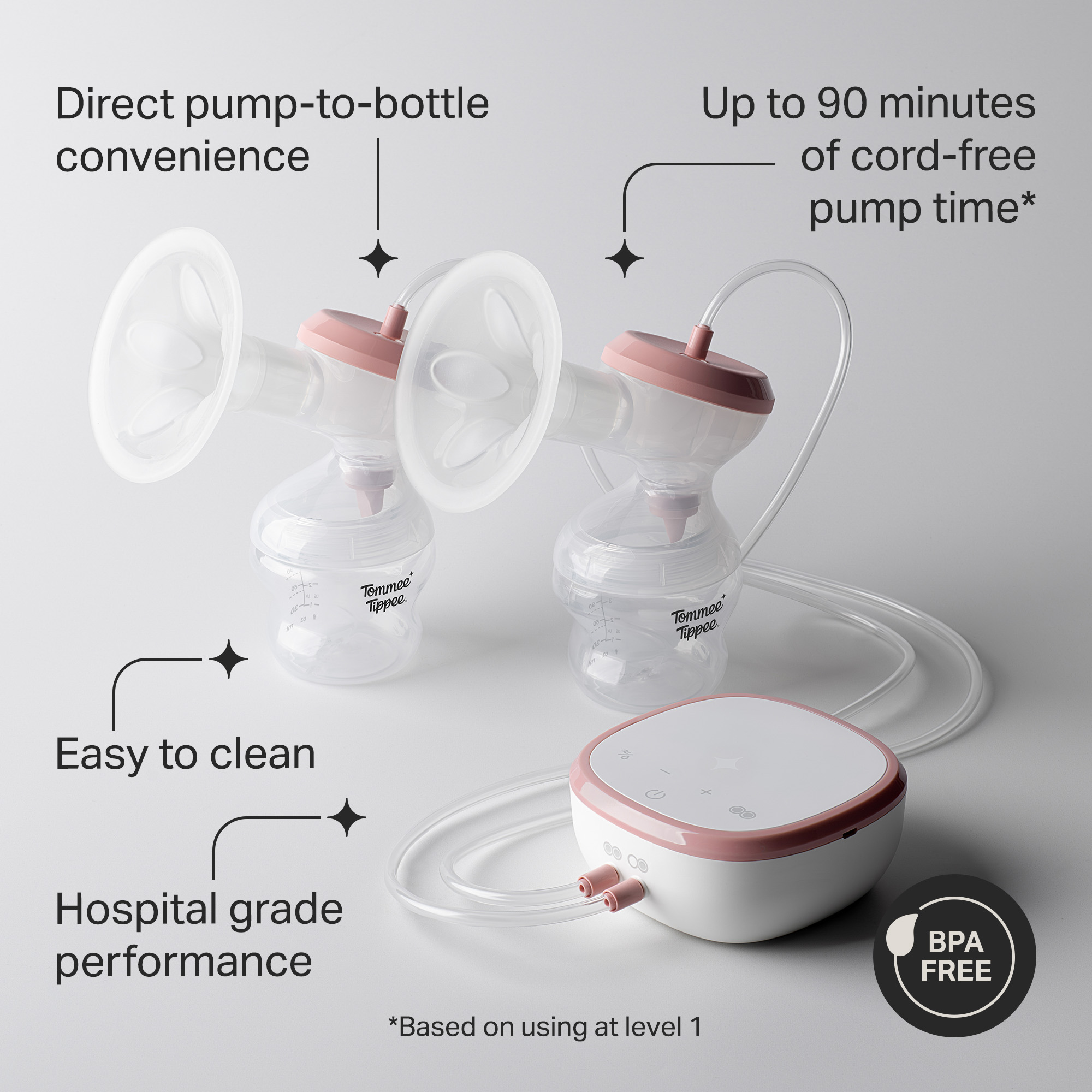 | Product Title | Tommee Tippee Double Electric Breast Pump, Hospital Grade, Soft Silicone Petal Massage Cushion, 24mm Flange + 5 Inserts for Perfect Fit, 2 Modes & up to 9 Levels, Quiet, USB Rechargeable, 90 Mins |