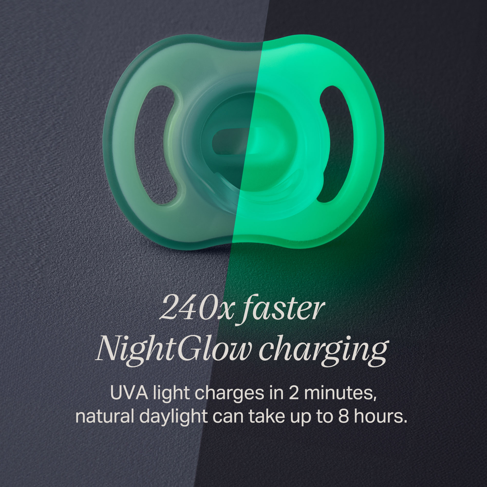 Glow in the dark dummy included: Comes with a 0-6m Ultra-light NightGlow soother. The lightest one-piece silicone soother**, that glows in the dark all night*