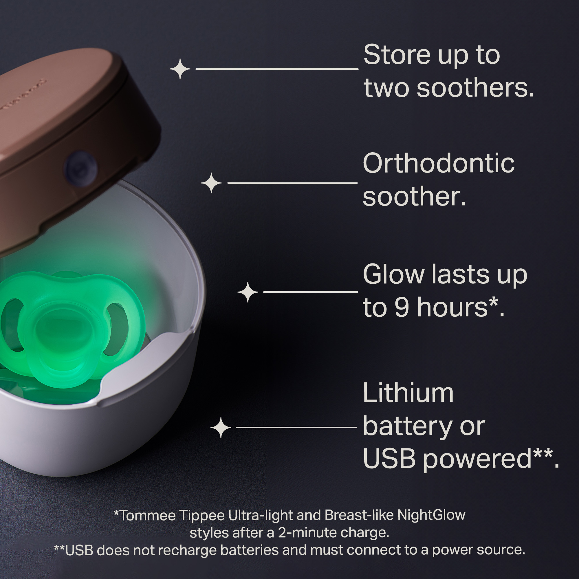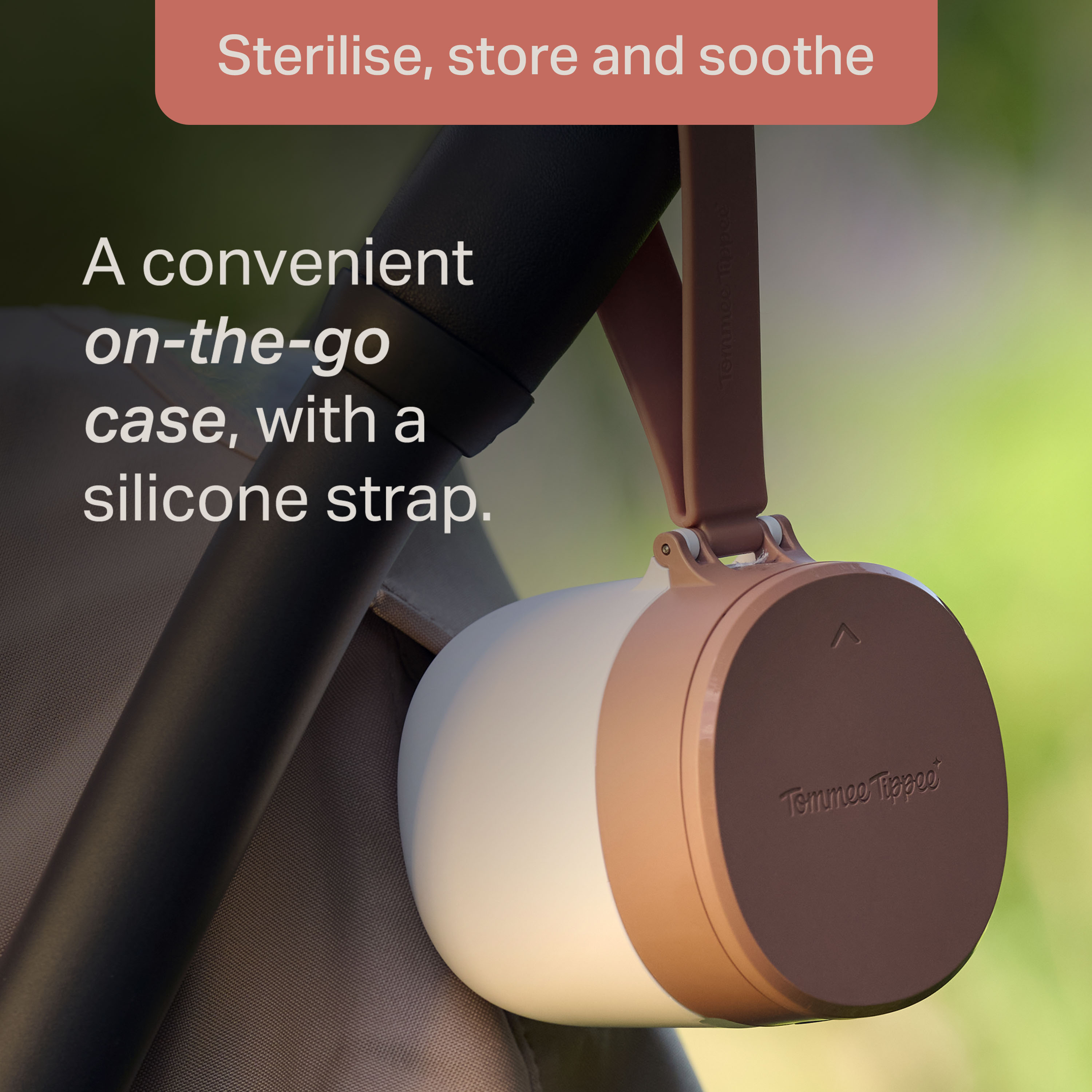 - Compact and easy to carry: On-the-go dummy case with a silicone strap. Specially designed for convenient NightGlow charging, sterilising and soothing