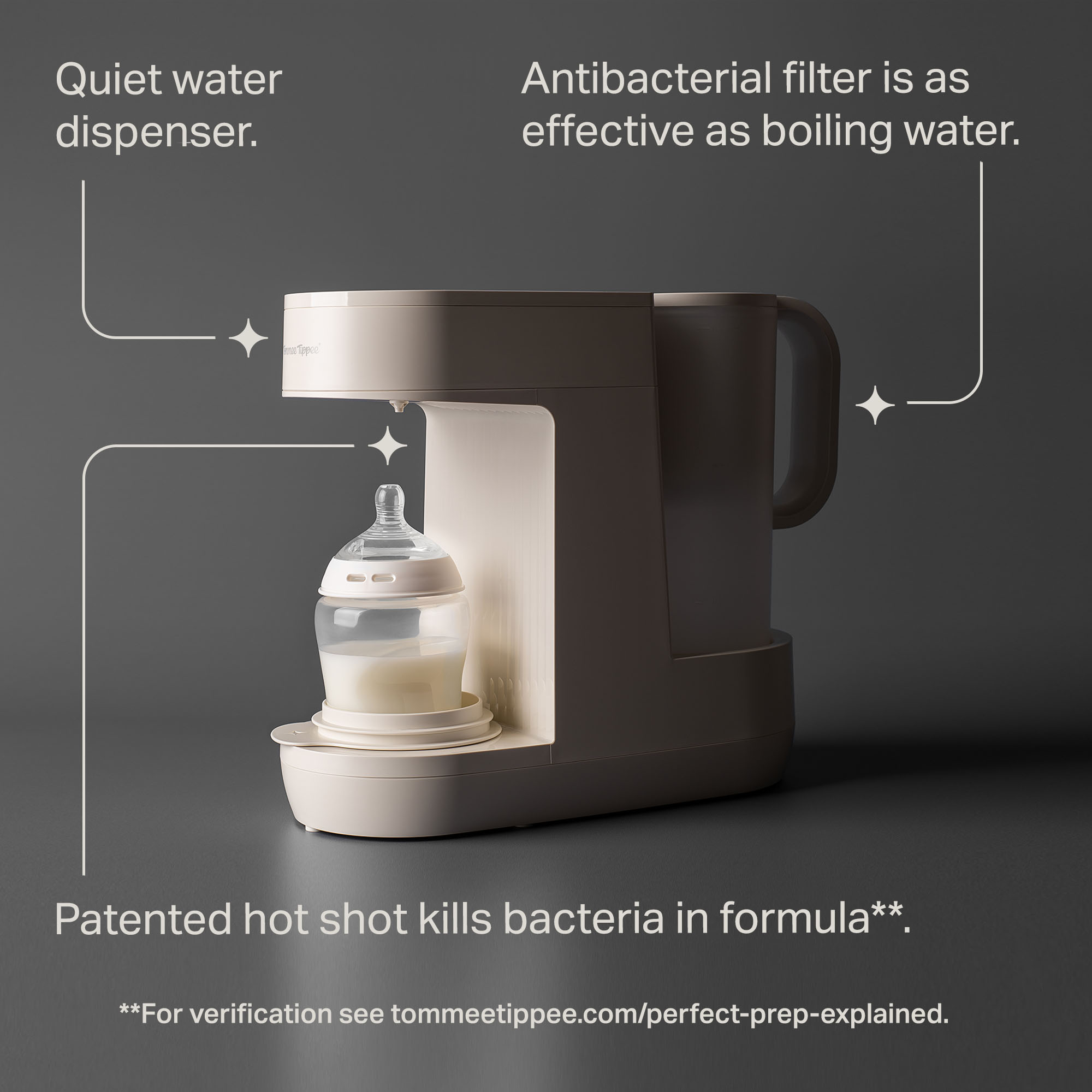 | Feature Bullet 1 | Safe bottle feeds, fast: The Tommee Tippee antibacterial filter is as effective as boiling water, and our patented hot shot kills bacteria in formula** |