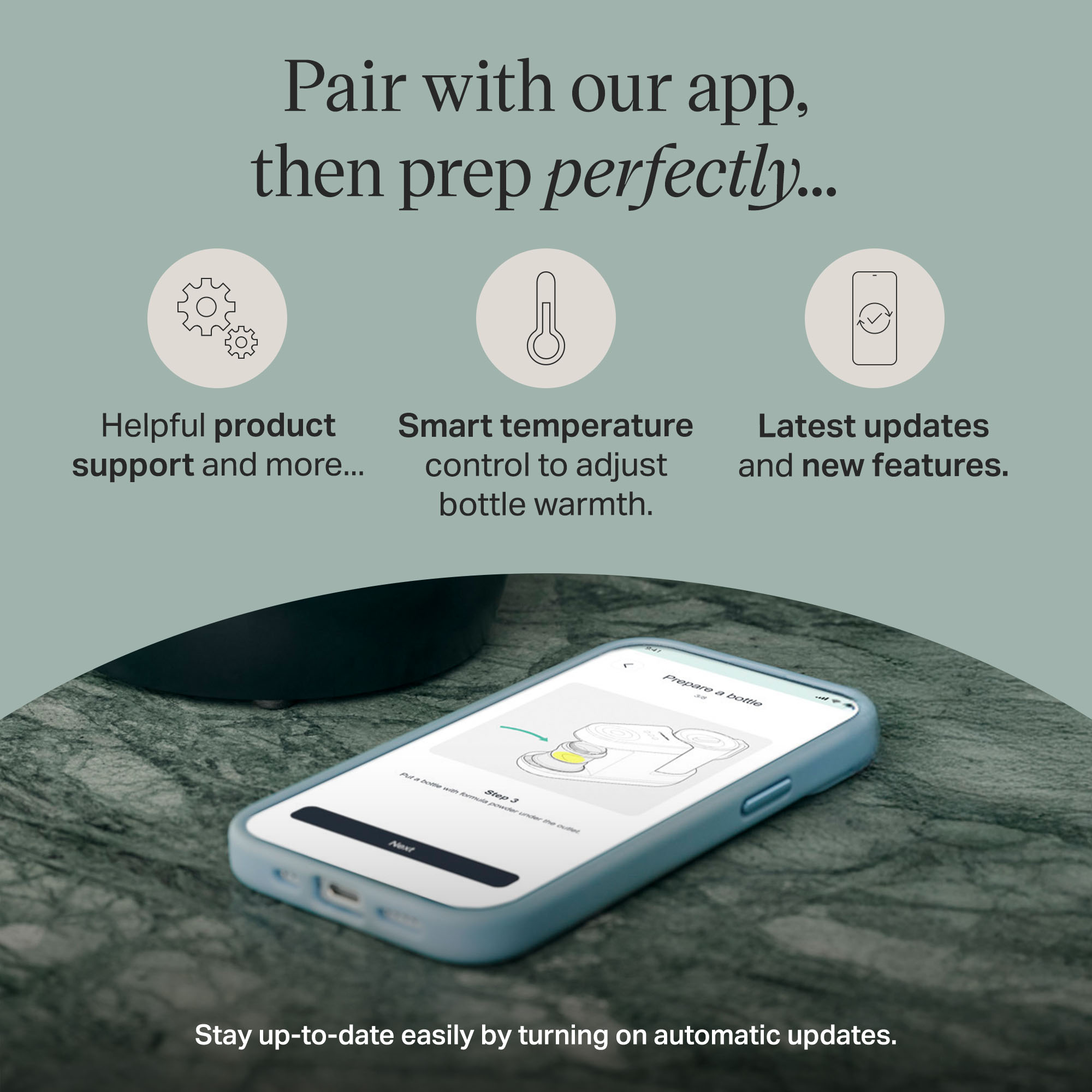 Intuitive app: Use the Tommee Tippee app to activate the latest product features and access step by step set up guides, product support and filter reordering prompts for your PerfectPrep machine
