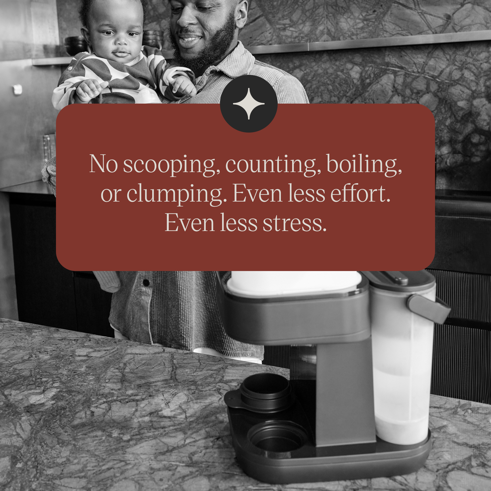 | Feature Bullet 3 | Clump-free feeds: Separate powder and water spouts mean no scooping, counting, or clumping, and easy cleaning |
