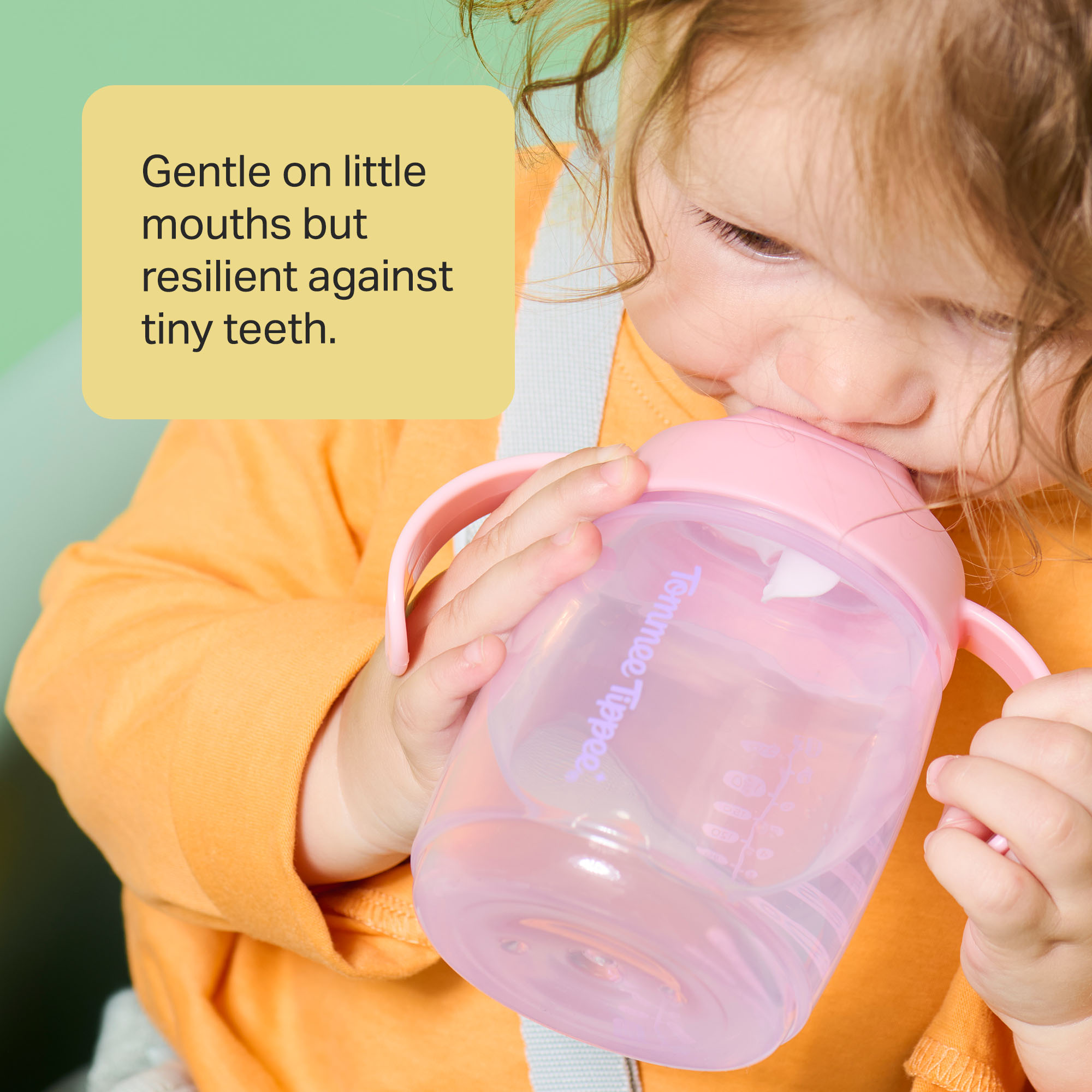 • One-piece spout is gentle on teething gums (but also bite-proof)