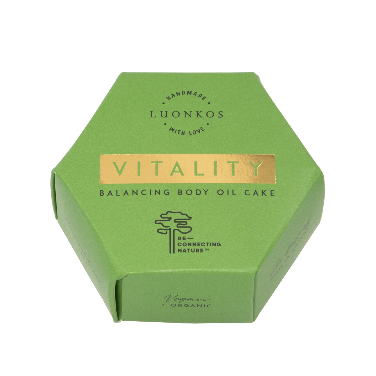 SKU EB-LK-009 EAN 6430073490103 HSCODE 33049900 Retail Short Product Description Moisturises and balances body skin. With Finnish forest microbes. For dry and sensitive skin. Retail Long Product Description Vitality Body Oil Cake– With Finnish Forest Microbes, Hydration for Your Skin 100% natural and fragrance-free. Developed in collaboration with the Finnish Allergy, Skin and Asthma Federation. The Vitality body oil cake moisturises and nourishes the skin, leaving it soft and supple. This solid body oil works like a lotion bar, locking in moisture. Especially suitable for dry, dehydrated, sensitive, and atopic skin. Reconnecting Nature™ Forest Microbiome Extract This innovative Finnish extract supports the skin’s natural microbiome and brings the balancing power of nature into your skincare routine. According to studies, applying the extract to the skin may help in the treatment of immune-mediated conditions such as atopic dermatitis. Country of Origin Finland INCI List - Theobroma Cacao Seed Butter
