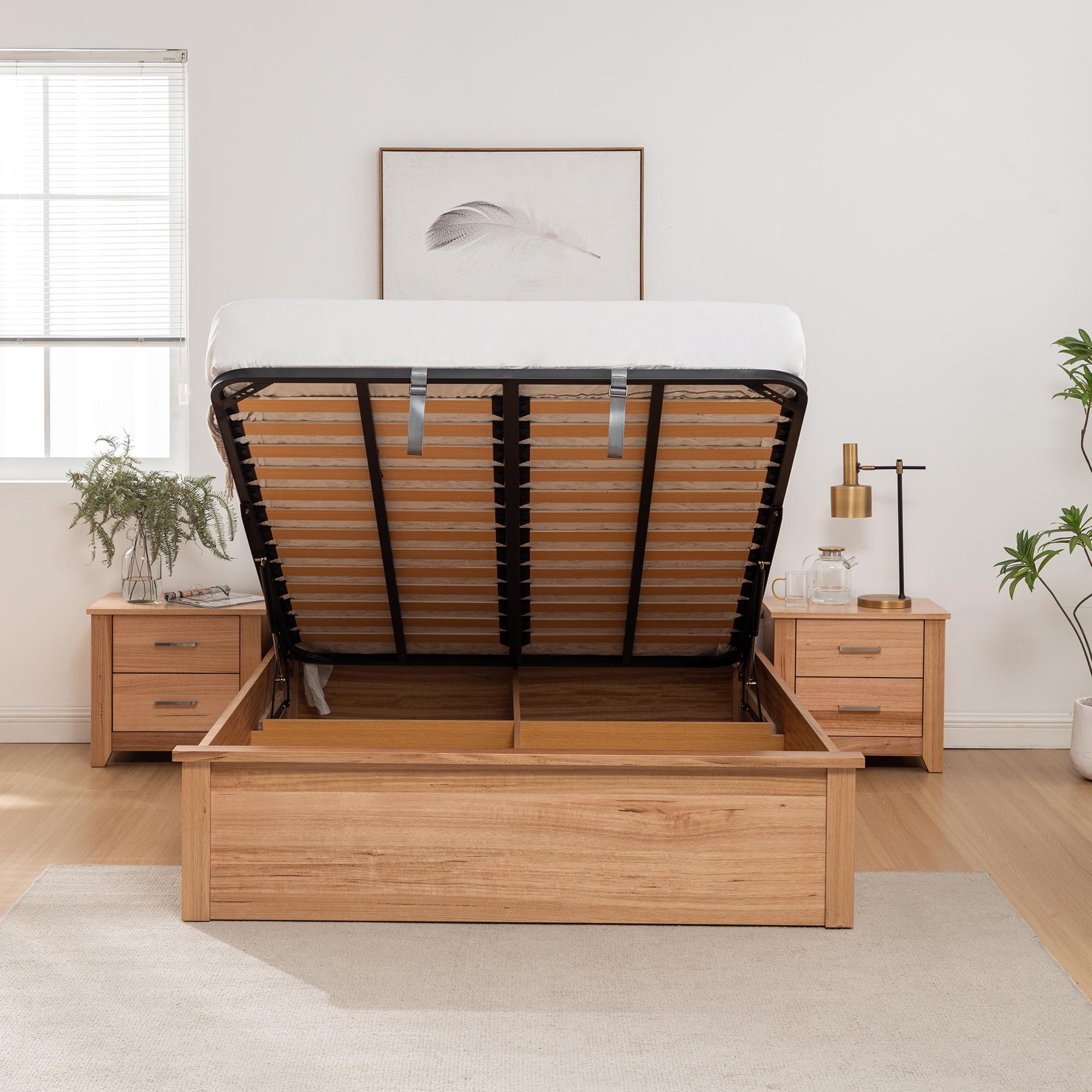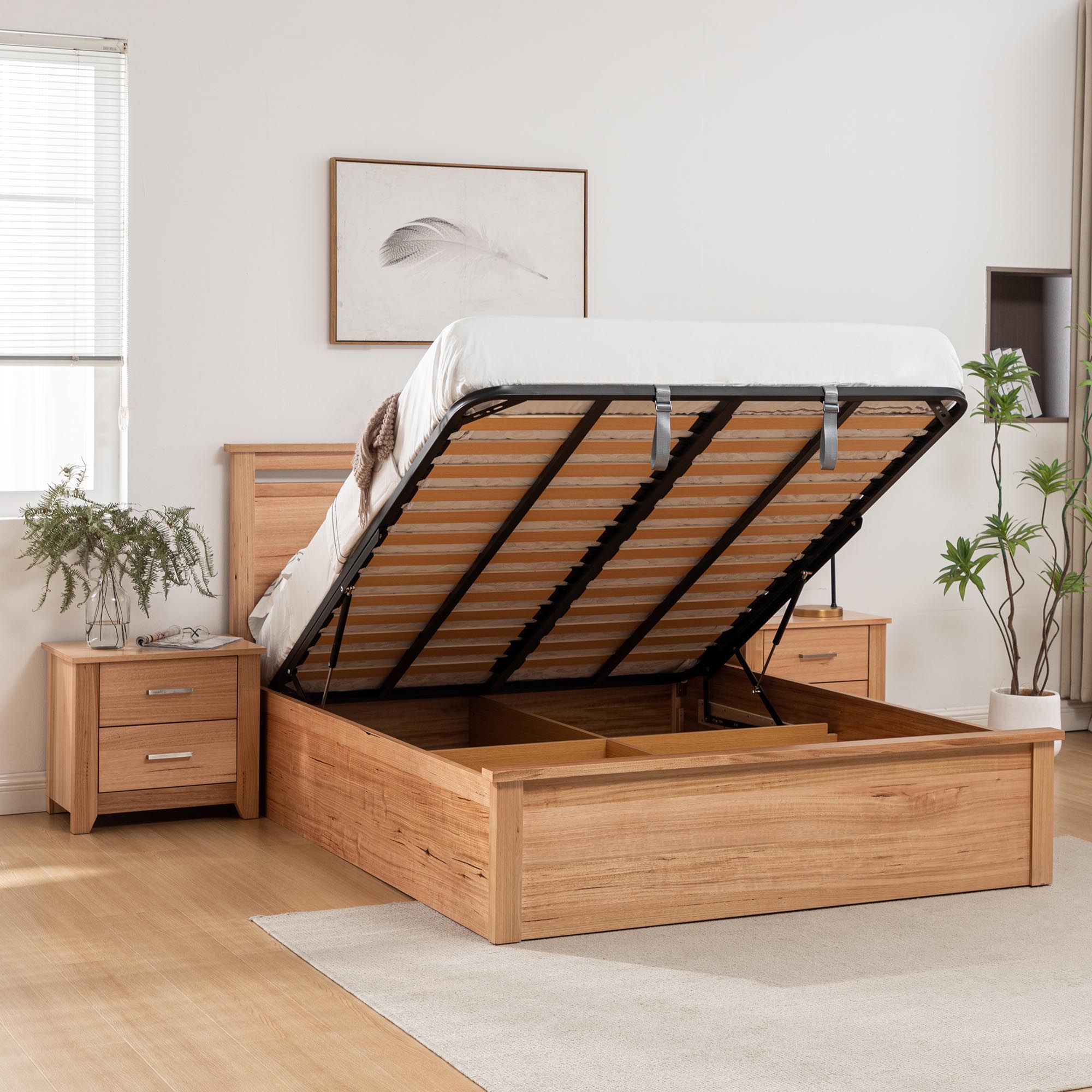 Portland Bed Frame Gas Lift Natural Queen