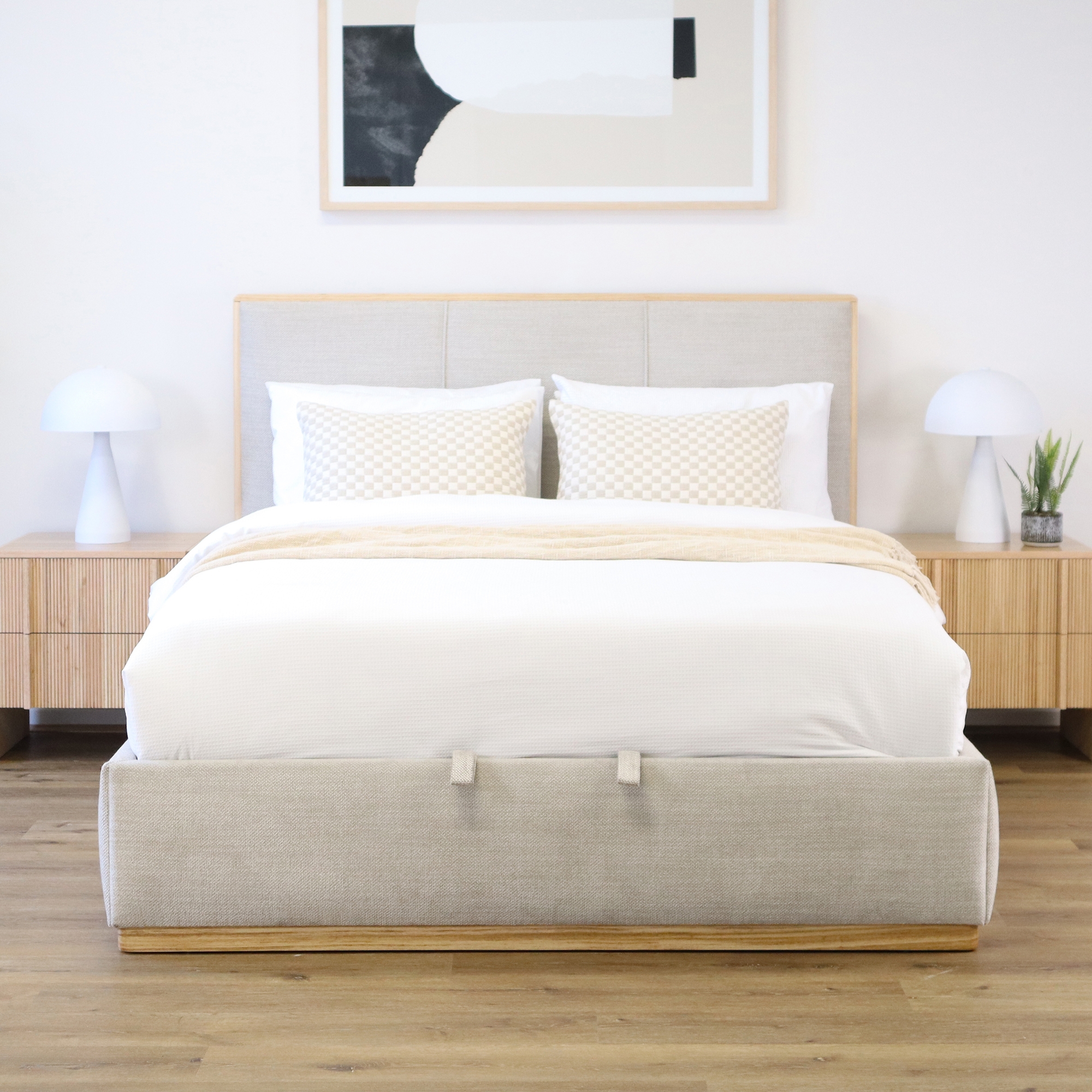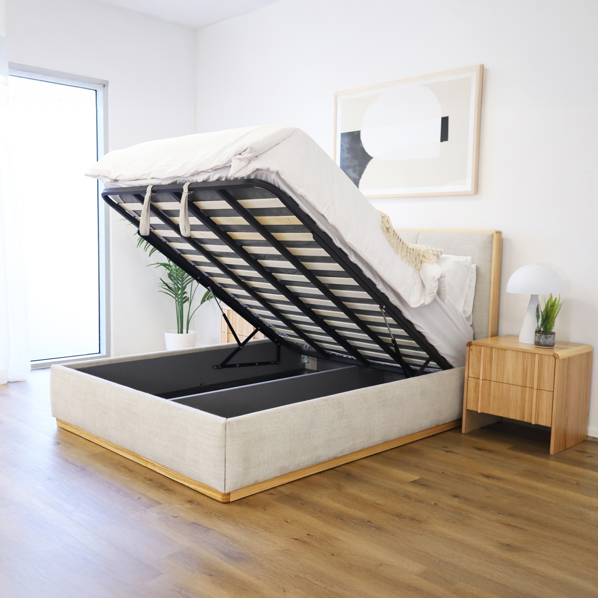 Elevate your sleep with the BOWEN QUEEN BED with GAS LIFT. Ideal for modern living this stunning bed makes a stylish statement while also offering under bed storage to maximise your floorspace.