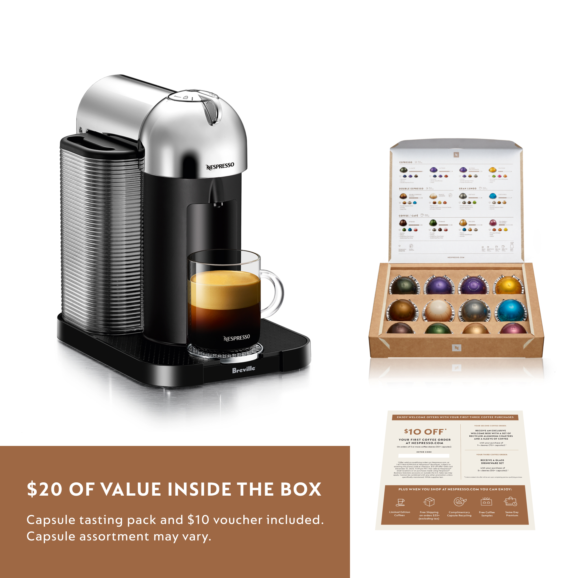 Nespresso Vertuo Coffee and Espresso Maker by Breville, Chrome with Aeroccino Milk Frother