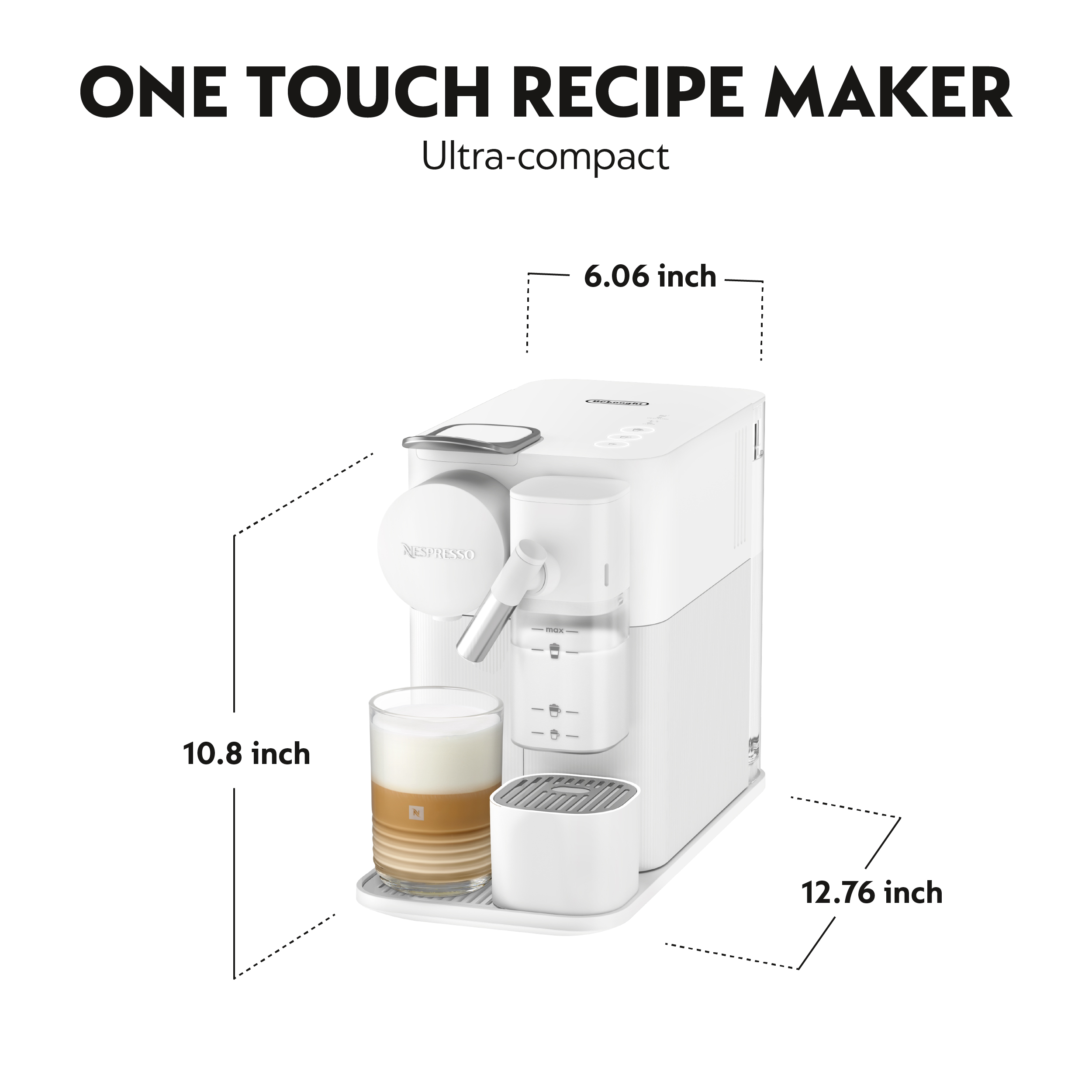 Nespresso Lattissima One Original Espresso Machine with Milk Frother, by DeLonghi, Porcelain White