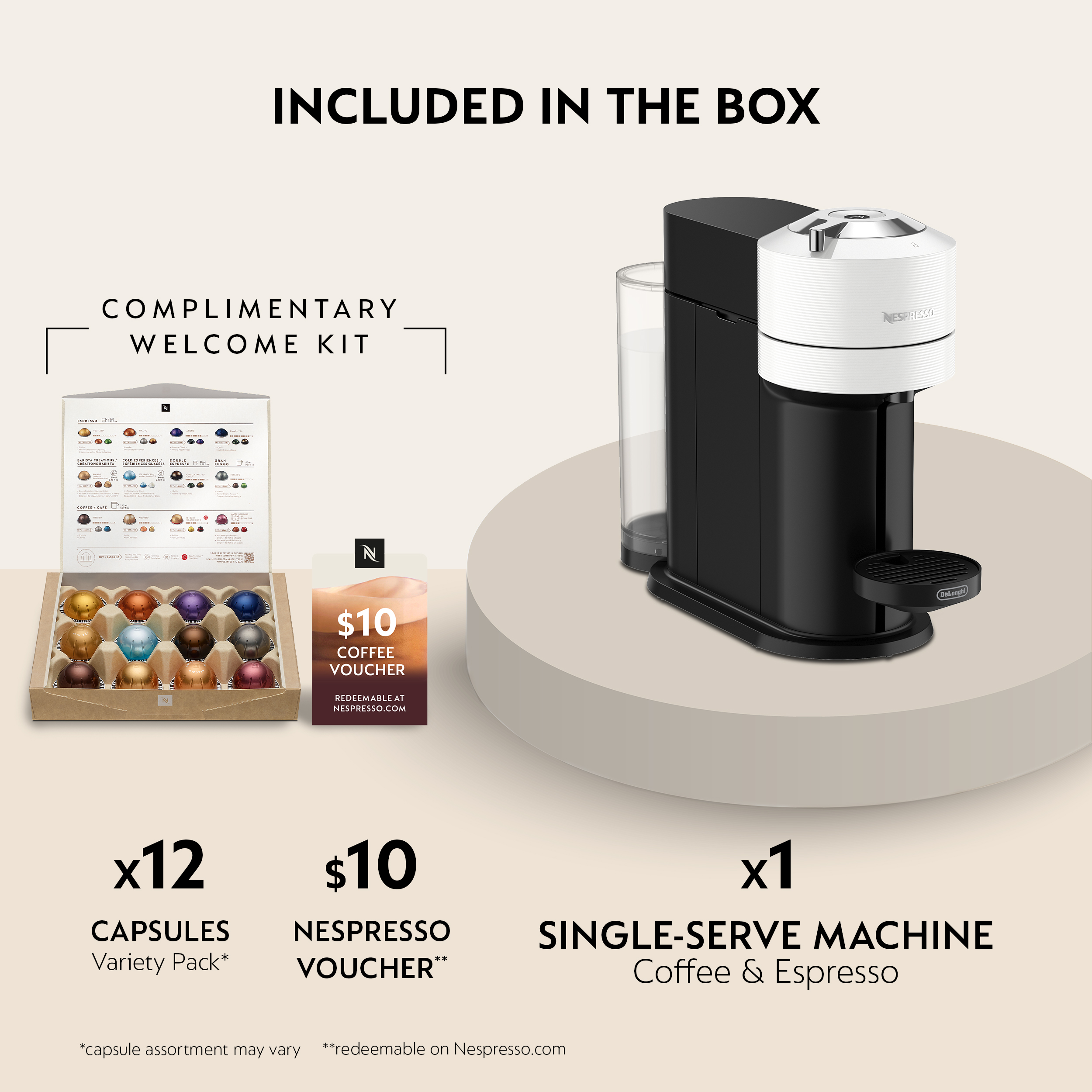 Nespresso VERTUO NEXT coffee maker and espresso machine takes the full range of Nespresso coffee styles even further. In addition to its original espressos, NESPRESSO VERTUO NEXT produces an extraordinary cup of coffee with a smooth layer of crema, the signature of truly great cup of coffee. The VERTUO coffee and espresso maker conveniently makes 6 brew sizes: 5, 8, 12, 18 oz Coffee and single and double Espresso. This Nespresso machine brings together the know-how of all its coffee experts, who have carefully chosen the origin and roasting of each coffee blend and created a brewing system using Centrifusion technology, a patented extraction technology developed by Nespresso. Just insert a Vertuo capsule and close the lever when activated, the capsule spins, blending ground coffee with water and extracting every drop of flavor. Its precision brewing system recognizes each capsule and automatically adjusts its brewing parameters to consistently deliver the best in cup result. Each machine includes a complimentary welcome set with a range of Nespresso pods Vertuo with unique aroma profiles. Order your Nespresso pods, receive personalized advice, and obtain technical support or repair for your machine through Nespresso via mobile app, online at Nespresso.com, by telephone or in one of our Boutiques. This coffee machine is compatible exclusively with Nespresso Vertuo pods.