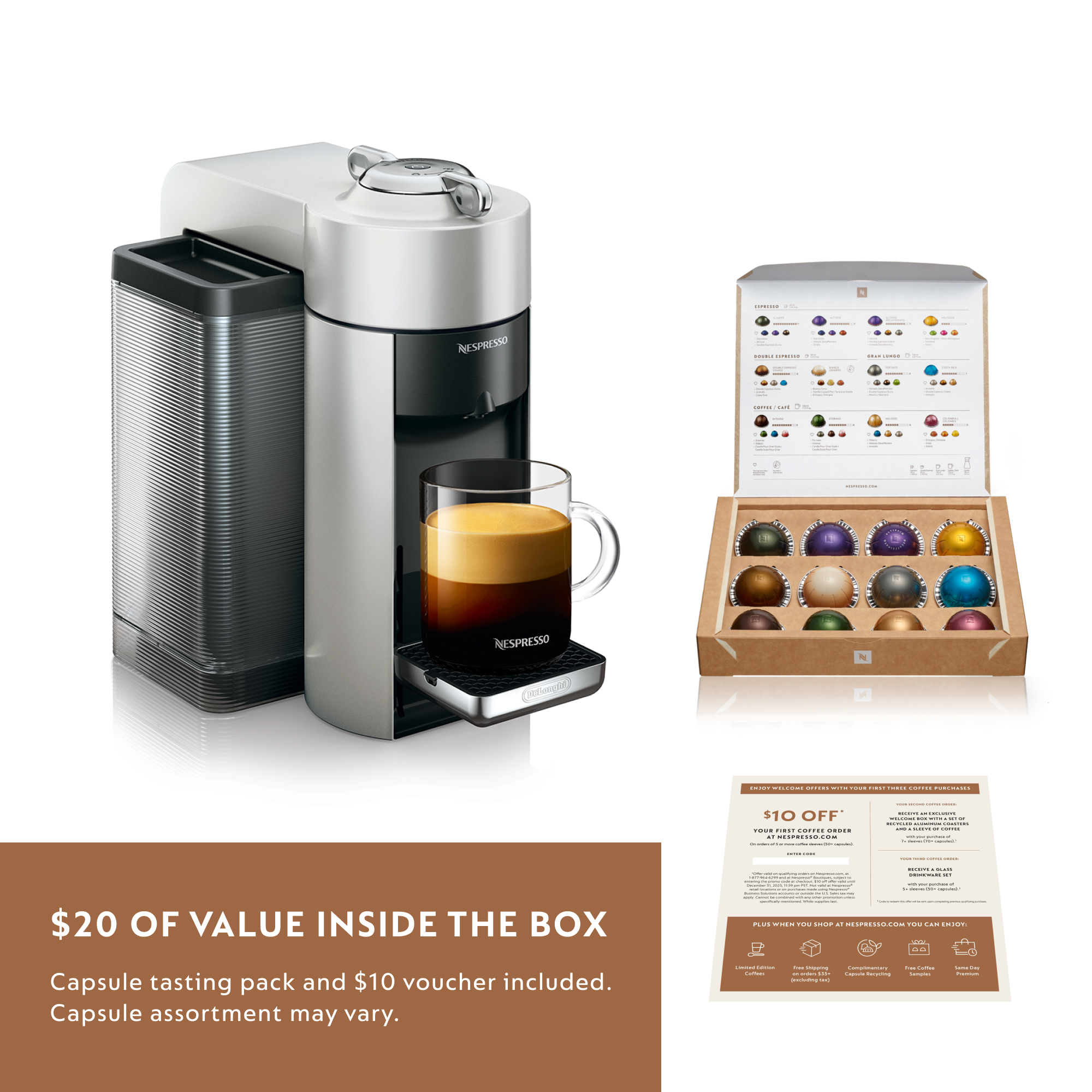 Nespresso Vertuo Coffee and Espresso Maker by De'Longhi, Silver