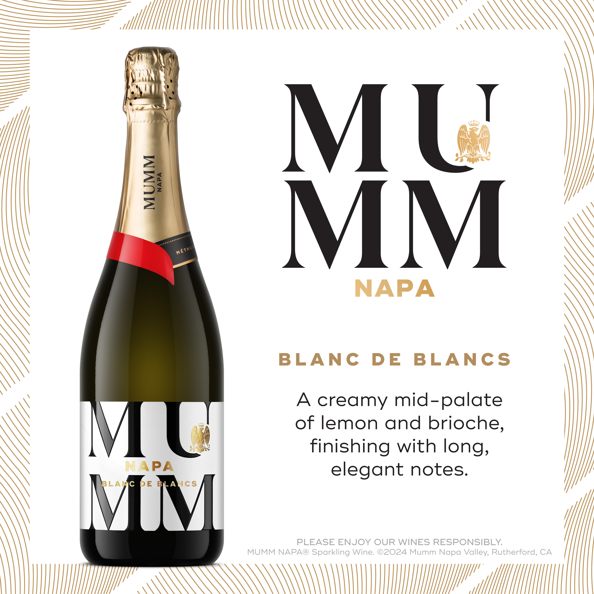 - NAPA APPELLATED: The new Mumm Napa range showcases a true sense of place with premium sparkling wines crafted using the Méthode Traditionnelle