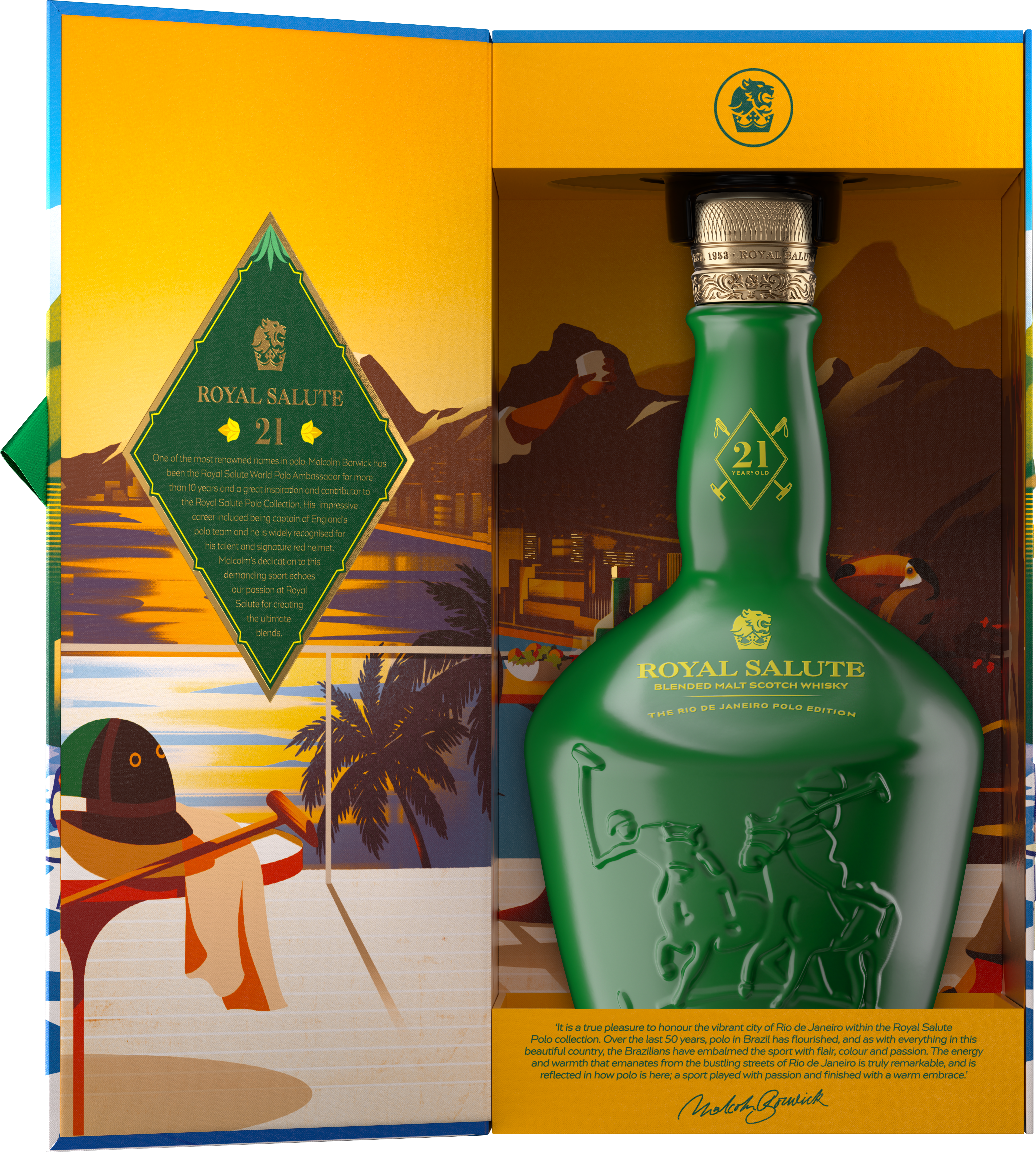 - ENJOY RESPONSIBLY: Each 700 ml bottle of Royal Salute 21 Year Old Rio de Janeiro Polo Edition Scotch Whisky is 80 Proof, 40% ABV