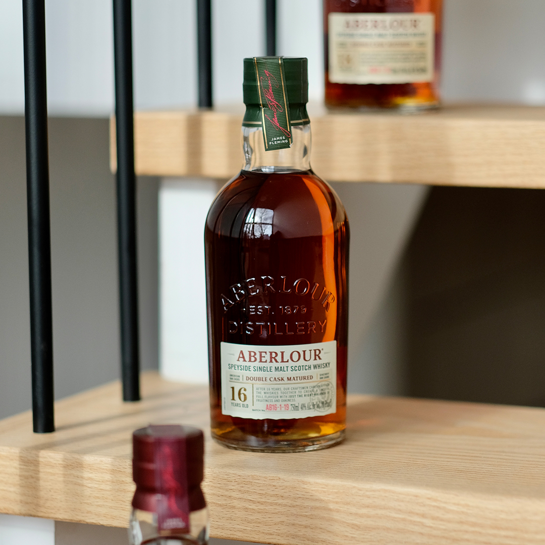 Product Title - Base 16 Year Old Double Cask Matured Single Malt Scotch Whiskey Short Description Fruity & Deep. With the depth and complexity that comes from being matured for 16 years in a combination of American Oak casks and the finest Sherry butts, this expression’s warm and fruity notes are enriched by an engagingly spicy sweetness. Long Description Aberlour Distillery knows a thing or two about whisky; they've been making fine Scotch whisky for nearly 140 years. A true Speyside distillery, Aberlour's rich history dates back to 1879 when founder James Fleming chose the perfect location along the River Spey to set up shop. It is here, halfway between Inverness and Aberdeen in the Scottish Highlands, where the magic happens. Using the natural spring water that flows down from the Ben Rinnes Mountain and double-cask matured in ex-bourbon American oak barrels and Oloroso sherry casks for 16 years, it all comes together to make a beautifully mellow and smooth Scotch whisky. A great sipping whisky bursting with sweet raisin and nutty aromas; floral, sweet plum, and oak notes; and a long warm spicy finish. Best savored neat or with just a dash of water to elevate the flavors. Manufacturer Pernod Ricard Awards - 93 - Silver, International Wine, and Spirt Competition 2025