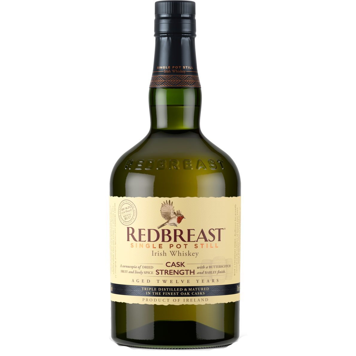 - ENJOY RESPONSIBLY: One 750mL bottle of Redbreast 12 Year Old Cask Strength is 112-118 proof or 56-59% ABV