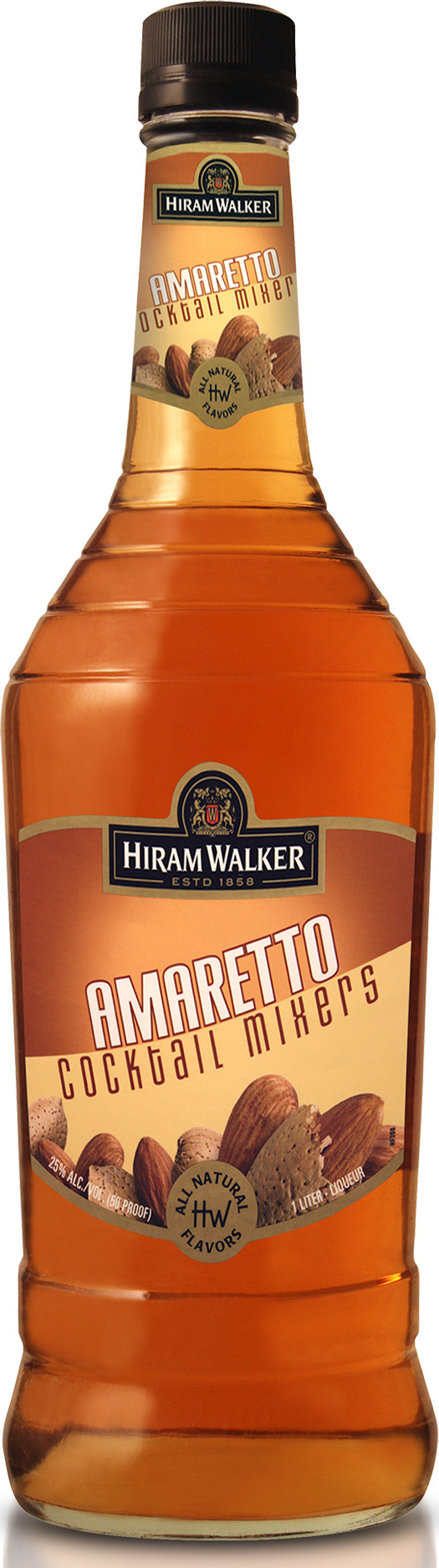 - Hiram Walker Amaretto is warm golden brown liqueur with a strong almond and caramel flavor.