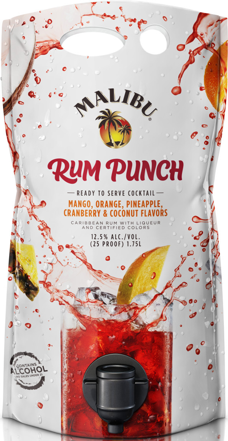 - ENJOY RESPONSIBLY: Each 1.75L Pouch of Malibu Ready to Serve Cocktail Rum Punch is 25 proof, 12.5% ABV
