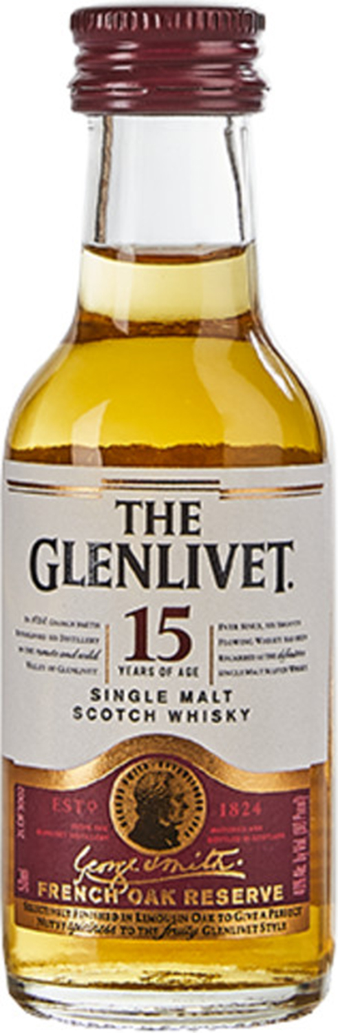 - INCLUDES: One 50 mL bottle of The Glenlivet 15 Year Old Single Malt Scotch Whisky