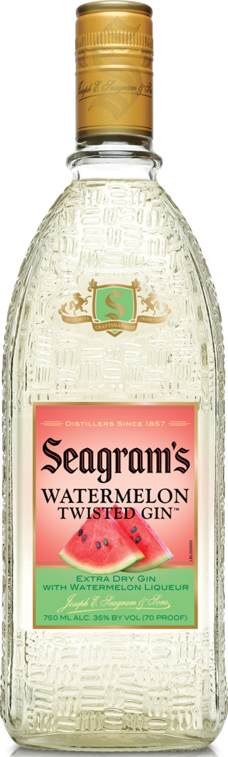 Product Title - Base Twisted Watermelon Flavored Gin Short Description Seagram’s Watermelon Twisted Gin is a subtle twist to the classic taste of Seagram’s Gin. Enjoy it neat or in a martini! Long Description Seagram’s Watermelon Twisted Gin is a subtle twist to the classic taste of Seagram’s Gin. We start with Seagram’s Extra Dry Gin and then infuse it with a twist of natural watermelon flavor, perfectly complementing our blend of botanical essences. This flavorful twisted gin can be enjoyed neat, in a martini, or with your favorite juice or mixer. Our Twisted Gins lineup features lime, pineapple, peach, apple, red berry, melon and grape flavors, which have also earned top awards in the gin category. Manufacturer Pernod Ricard Brand SEAGRAMS GIN GPC SPIRITS Last Updated Date 2025-11-07 Product ID SEAG WTRMN TW GIN 70 12/750 US Product Line Description SEAGRAMS TWISTED GIN