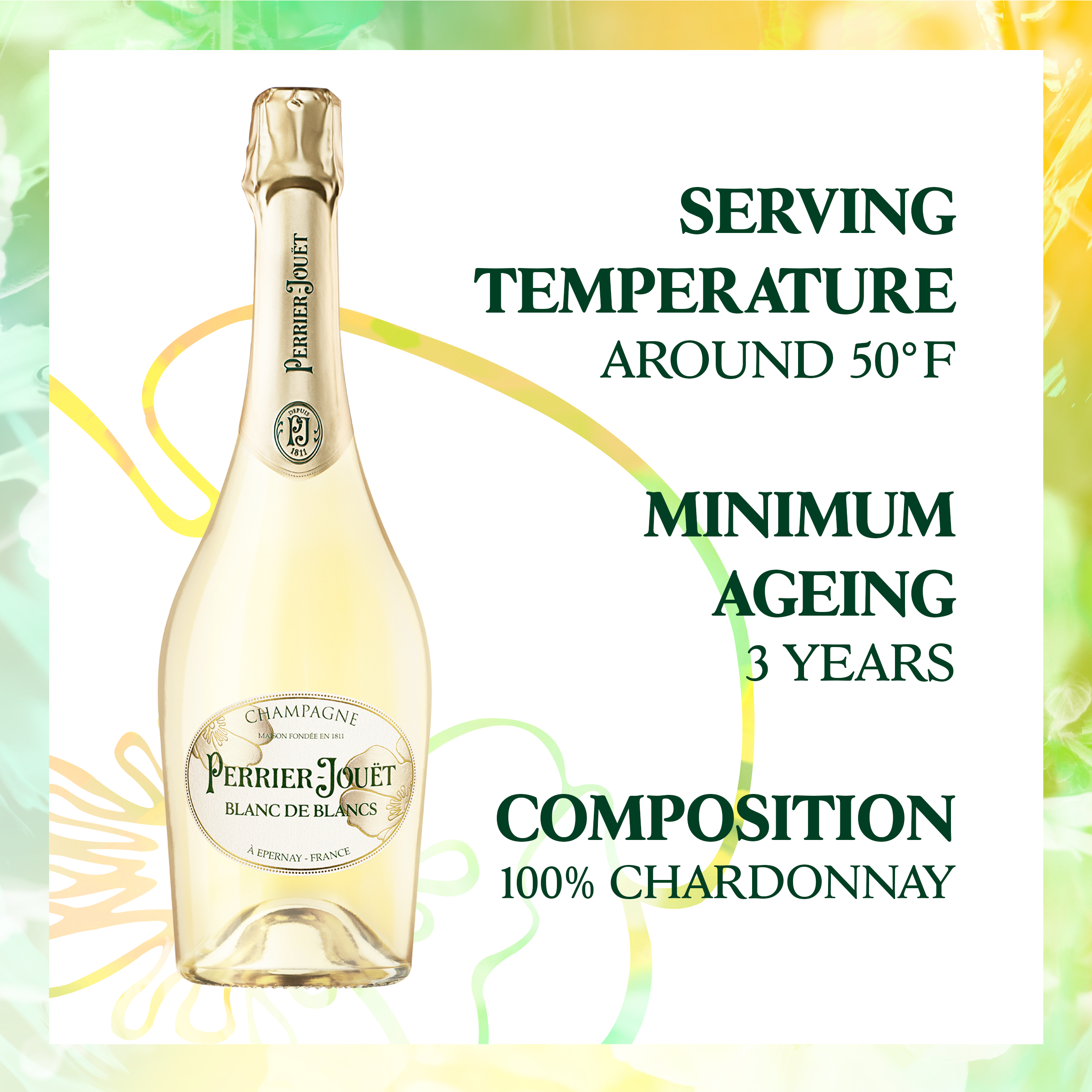 Product Title - Base Blanc De Blancs Champagne Manufacturer Pernod Ricard Vineyard History Nature as a source of inspiration: Pierre-Nicolas Perrier and Rose-Adélaïde Jouët shared a love of nature and the arts. She was a cultured young woman from a Norman merchant family; he a masterful vintner and botanist. A year after their wedding, in 1811 they founded Maison Perrier-Jouët: born of their desire to create a Champagne House with a difference. The founders’ passion for art, nature and champagne has been passed down through the generations. Their son Charles Perrier, a botanist like his father, took over the House in 1848. The family philosophy of creative freedom and an unconventional observation of nature is intrinsic to the history of champagne. These values shape Maison Perrier-Jouët to this day. Maison Perrier-Jouët's affinity with the Art Nouveau movement, whose ethos was to reinvent nature to re-enchant the everyday, is best expressed by the emblematic anemone motif illustrated for the House in 1902 by Emile Gallé. Today, the House's enduring bond with art and nature translates to an extravagant universe which reinvents luxury as a meaningful experience with artistic collaborations. Brand PJ GRAND BRUT & ALL OTHER GPC CHAMPAGNE/SPARKLING Last Updated Date 2023-09-18 Product ID PJ BDB SHAPE NVT 3/1.5L GE Product Line Description PERRIER JOUET BDB SHAPE