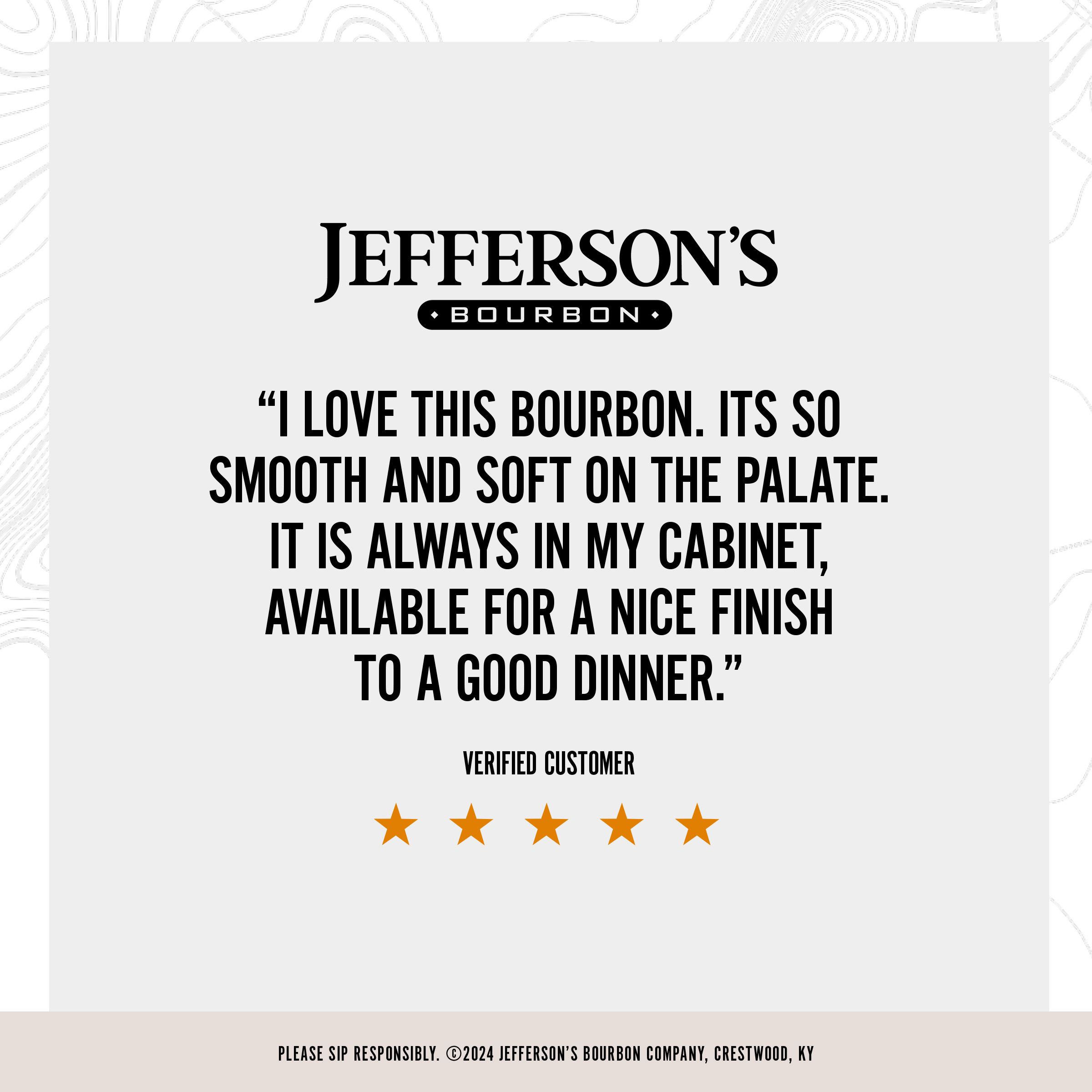 - INCLUDES: One 750 mL bottle of Jefferson's Bourbon Whiskey