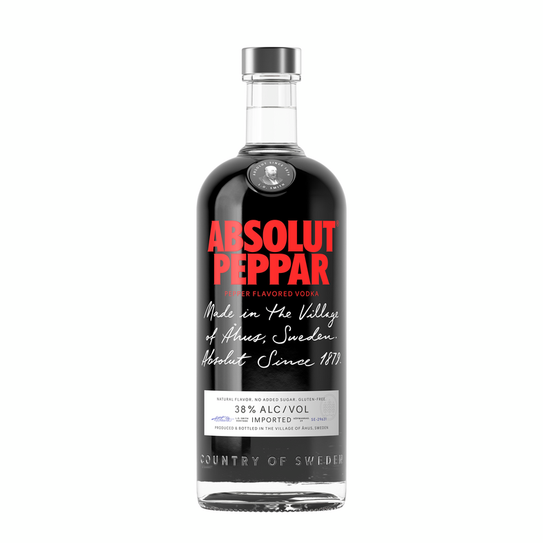 Product Title - Base Peppar Flavored Pepper Vodka Short Description With a fiery flavor that works perfectly in any bloody mary, Absolut Peppar adds zest and zing to countless vodka cocktails. Enjoy the burn! Long Description Absolut Peppar Flavored Vodka brings the zest and zing to your favorite cocktails. This spicy flavored vodka has a bold, fiery taste of pepper with an underlying complexity that ends in a smooth mouthfeel. Crafted with local and quality ingredients, this premium vodka uses Swedish water, winter wheat grown in the fields of Ahus, Sweden, and no added sugar. Produced at the famous old distilleries near Ahus with more than 400 years of Swedish tradition, Absolut Vodka is sustainably crafted in an energy-efficient CO2-neutral distillery using a continuous distillation method to help achieve optimum purity. Enjoy this liquor with soda water and ice for a quick and delicious cocktail, or try it in a Bloody Mary or Fiery Mule. As one of the most famous vodkas in the world, Absolut continues to be a staple for your everyday get togethers and special moments with friends and family. Enjoy and Drink Responsibly. Manufacturer Pernod Ricard Vineyard History Absolut is the Vodka for Mixing. Redefining the premium vodka landscape when introduced to the US, Absolut became synonymous with art, culture & cocktails. By inspiring a revolution in cocktail creation, Absolut launched a range of first-to-market flavors, becoming an icon it its own right. Brand ABSOLUT EXCL ELYX GPC SPIRITS Last Updated Date 2025-01-30 Product ID ABS PEPPAR 80 12/1L US Product Line Description ABSOLUT PEPPAR