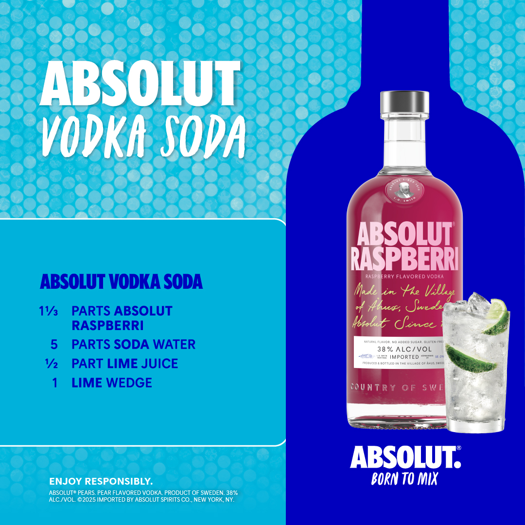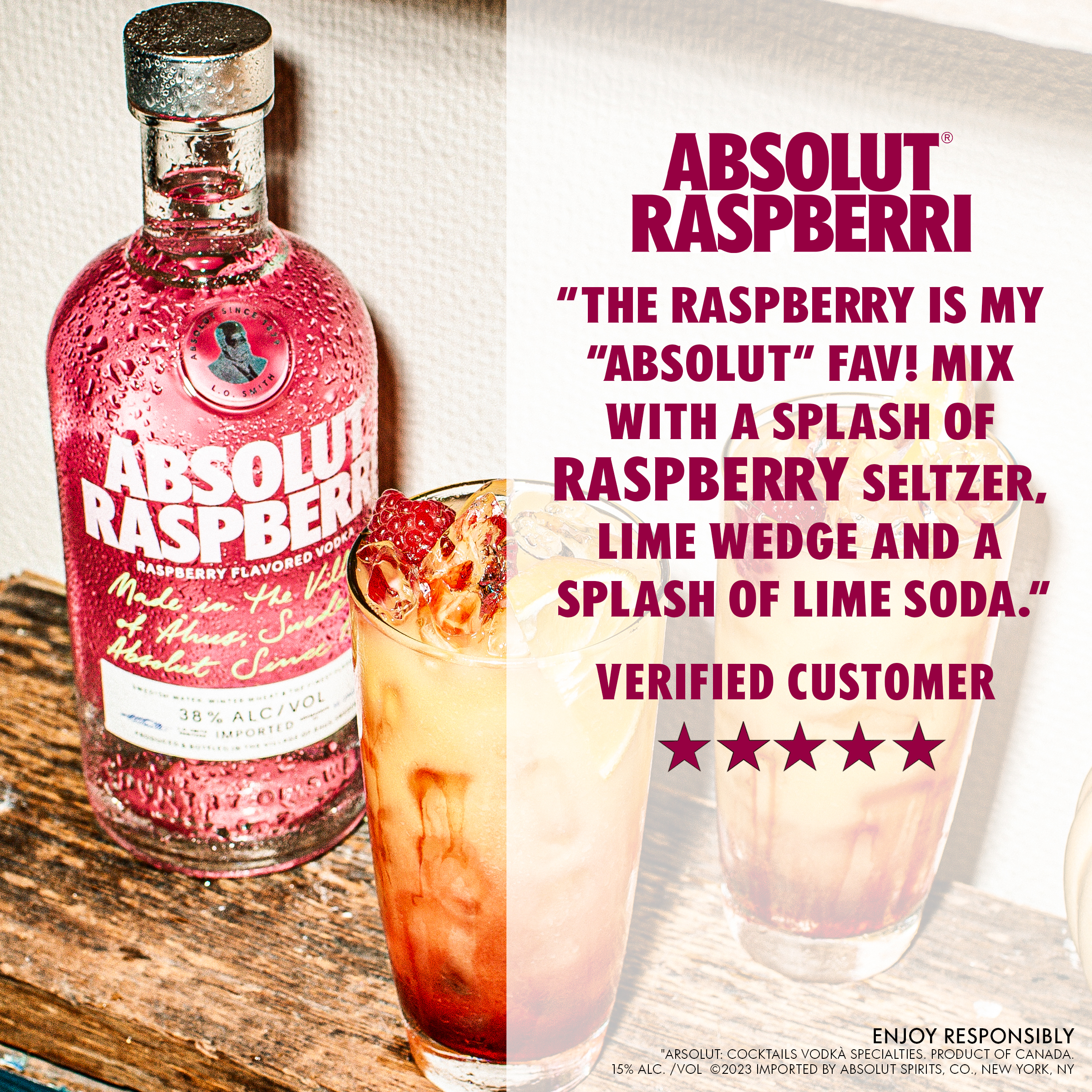- INCLUDES: One 750 mL bottle of Absolut Raspberri Vodka