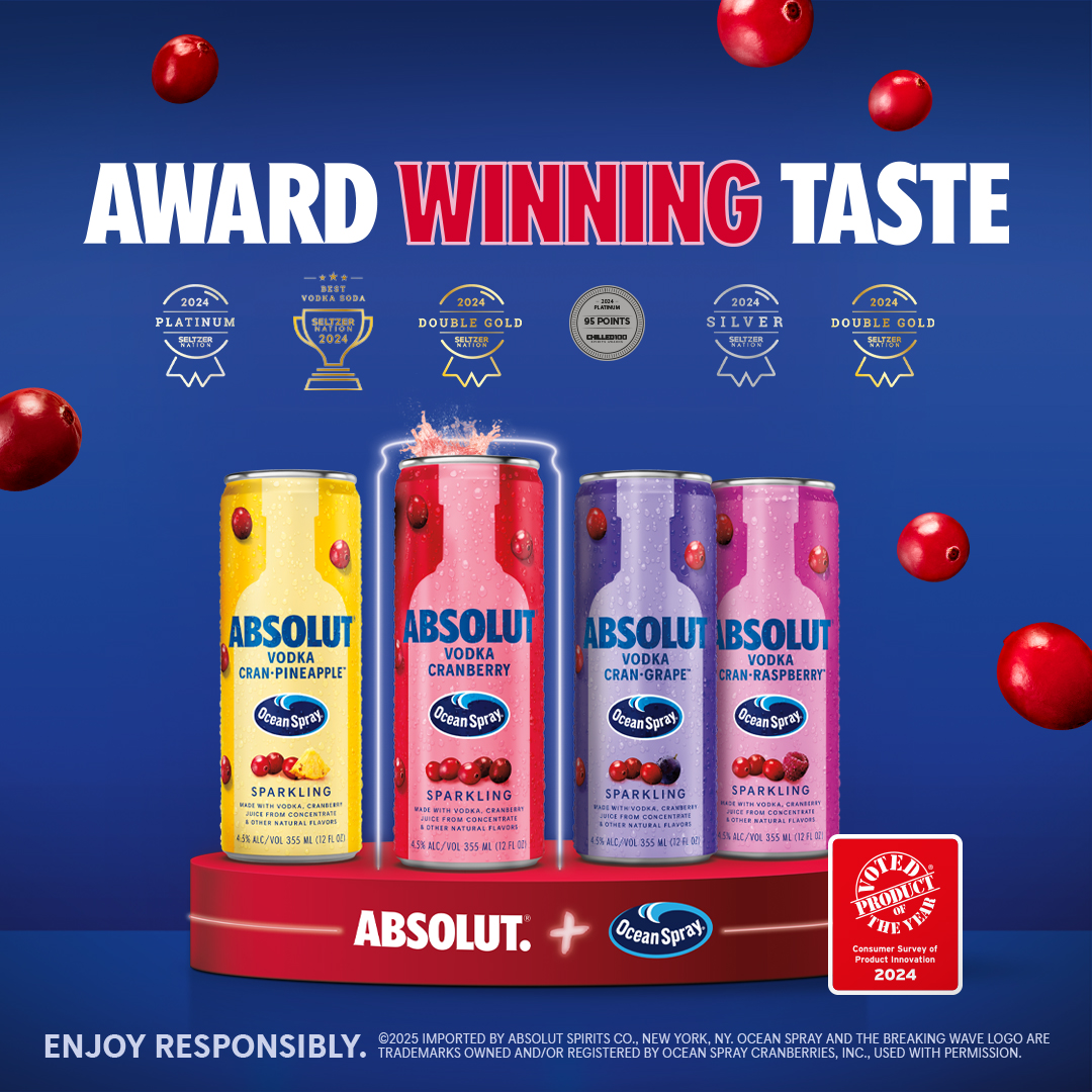 - DELICIOUSLY CRAFTED: Sparkling alcoholic beverages crafted with Absolut Vodka liquor, natural flavors, and real fruit juice from Ocean Spray