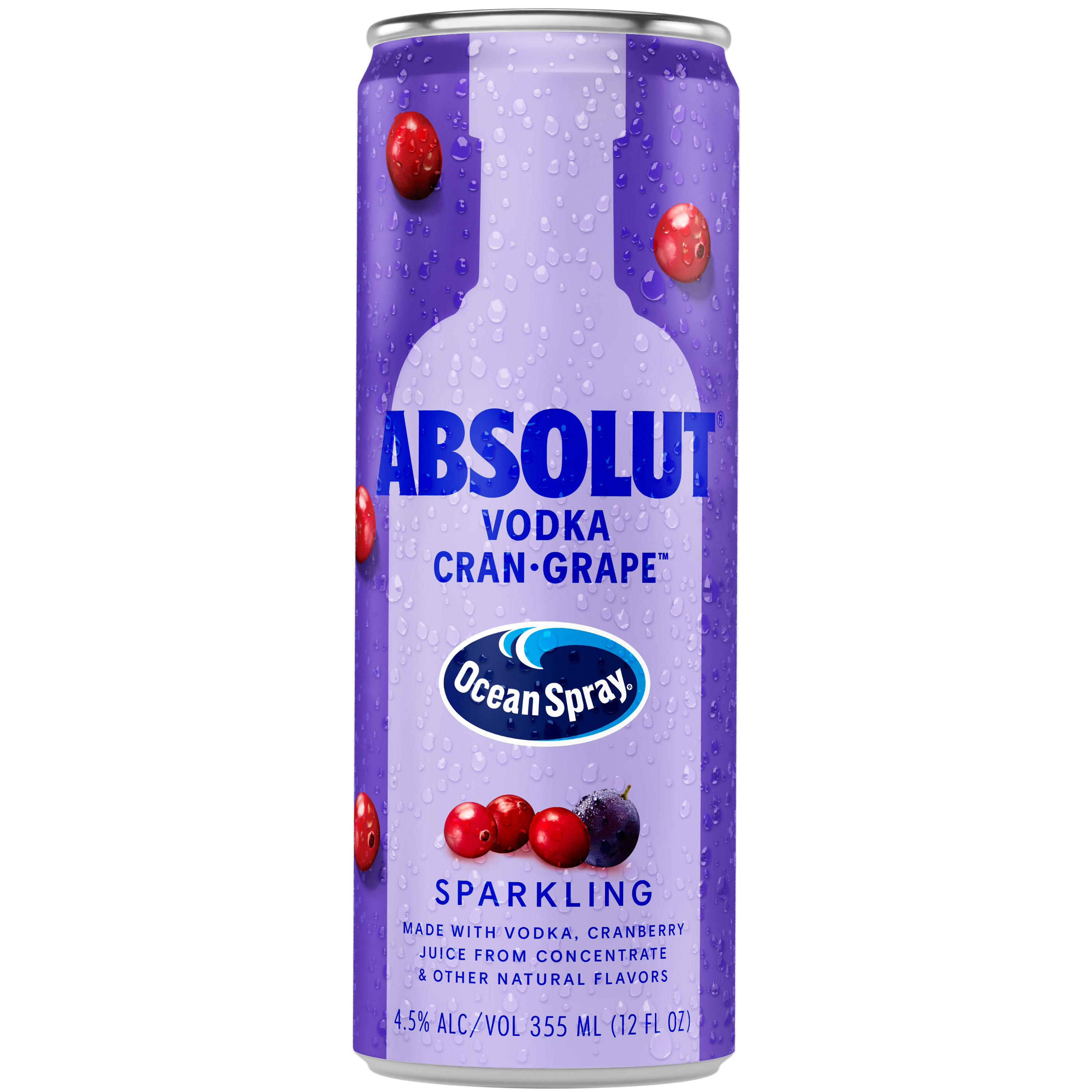 Product Title - Base Ocean Spray Cran-Grape Ready to Drink Flavored Cranberry Grape Vodka Cocktail Long Description Absolut Vodka Ocean Spray canned cocktails are inspired by the classic combination of Absolut Vodka and Ocean Spray Cranberry Juice. This iconic collaboration between Absolut Vodka and Ocean Spray delivers a ready to drink sparkling vodka cocktail in a convenient format that is ideal for sipping and perfect for sharing. Fruity and luscious, these sparkling vodka drinks have a refreshing taste. These real cranberry juice mixed drinks offer a sweet twist on the Absolut Vodka original liquor line with a fizzy touch that adds to the experience. Each sparkling cocktail is crafted with quality ingredients including Absolut Vodka, all-natural flavors, and real fruit juice from Ocean Spray. Enjoy Absolut Ocean Spray Sparkling Vodka Drinks on the rocks in a cocktail glass or chilled straight from the can. As one of the most famous vodkas in the world, Absolut continues to be a staple for your everyday get togethers and special moments with friends and family. Enjoy and Drink Responsibly. Manufacturer Pernod Ricard Vineyard History Absolut is the Vodka for Mixing. Redefining the premium vodka landscape when introduced to the US, Absolut became synonymous with art, culture & cocktails. By inspiring a revolution in cocktail creation, Absolut launched a range of first-to-market flavors, becoming an icon it its own right. Brand ABSOLUT CANS GPC SPIRITS Last Updated Date 2025-08-14 Product ID ABS OSCRNGRP 9P24/355 6X4CNUS* Product Line Description ABSOLUT X OCEAN SPRY CRAN GRAP
