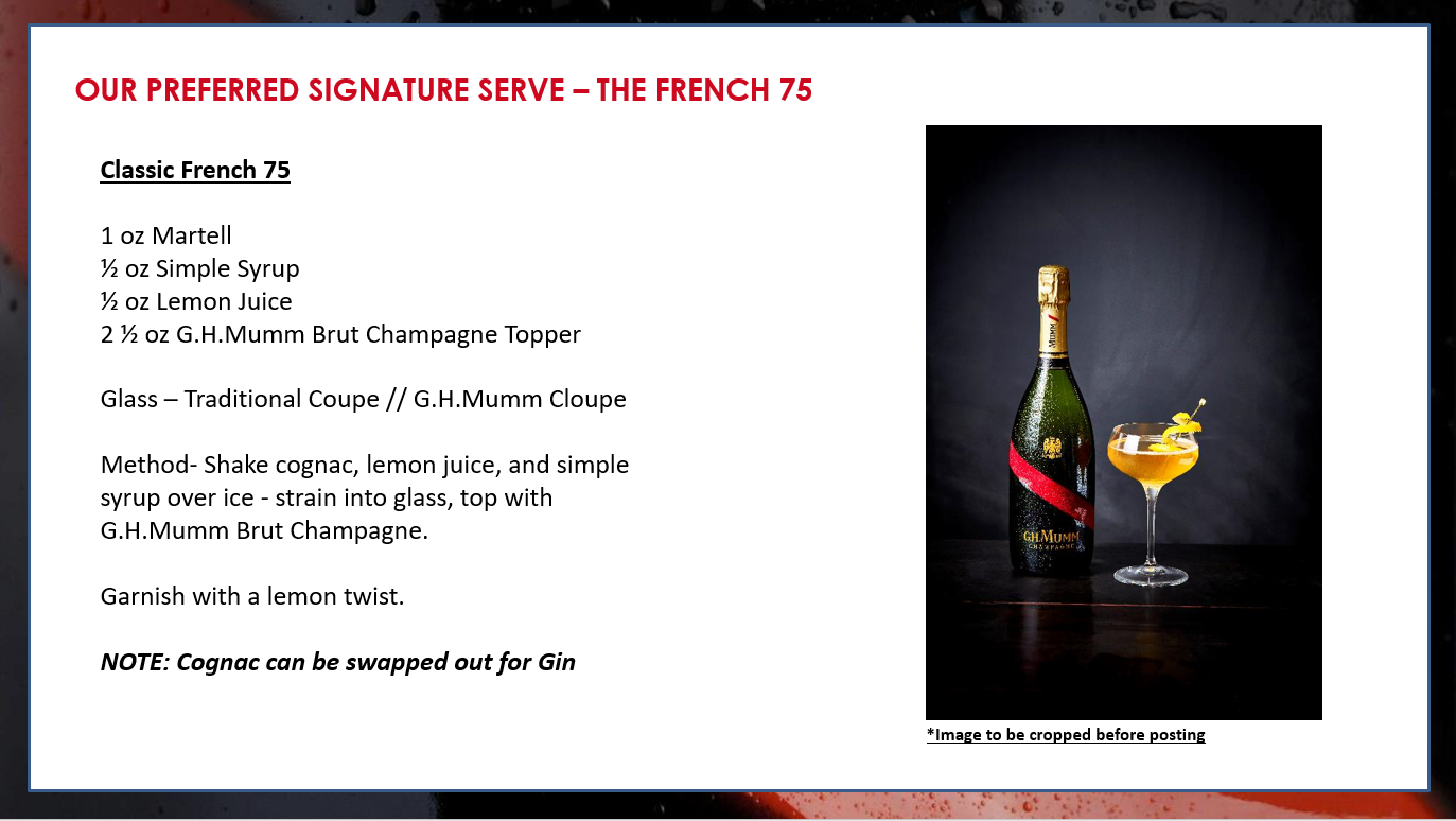 - SIGNATURE CHAMPAGNE: Expresses the nuances of Pinot Noir grapes from the Champagne region to create the House’s signature style