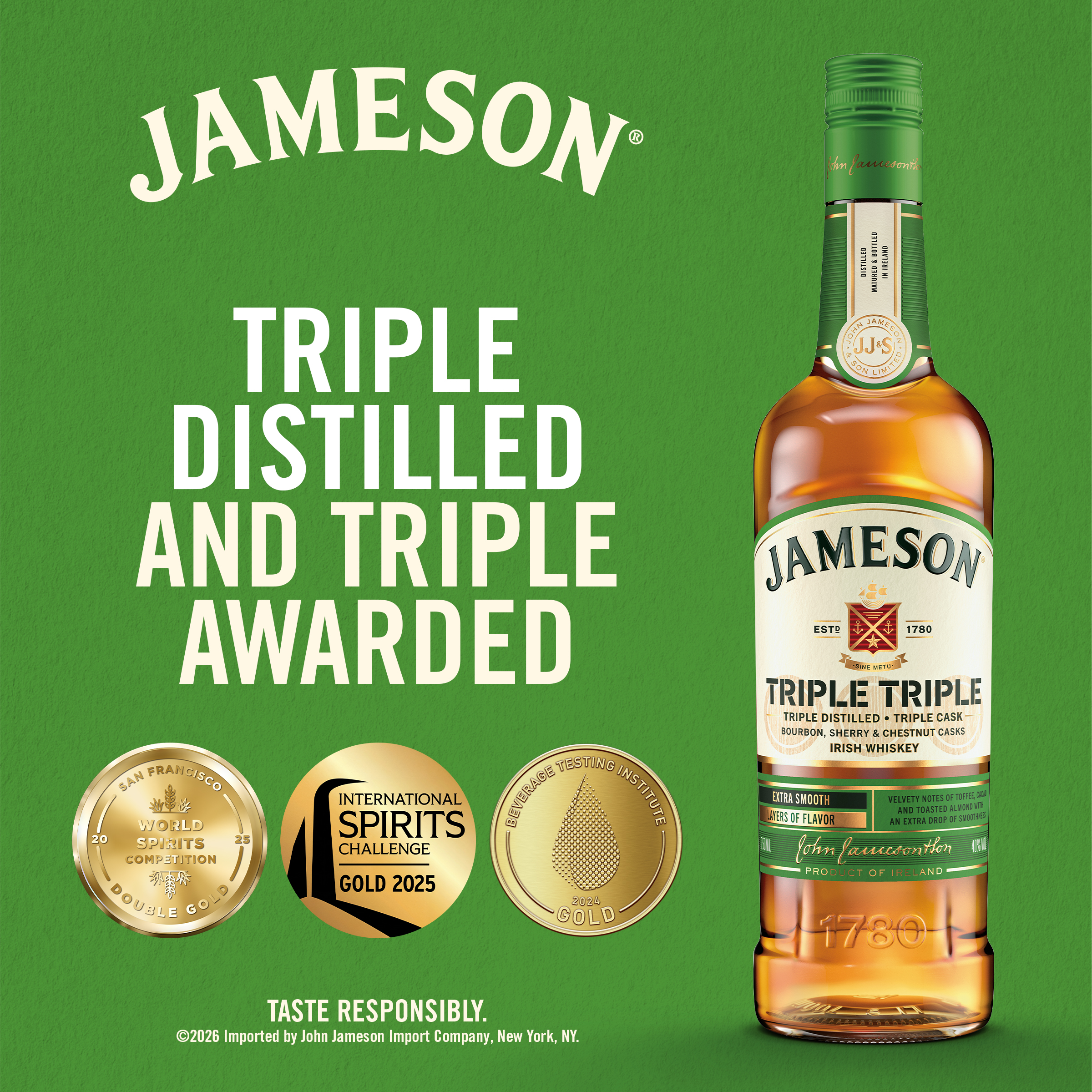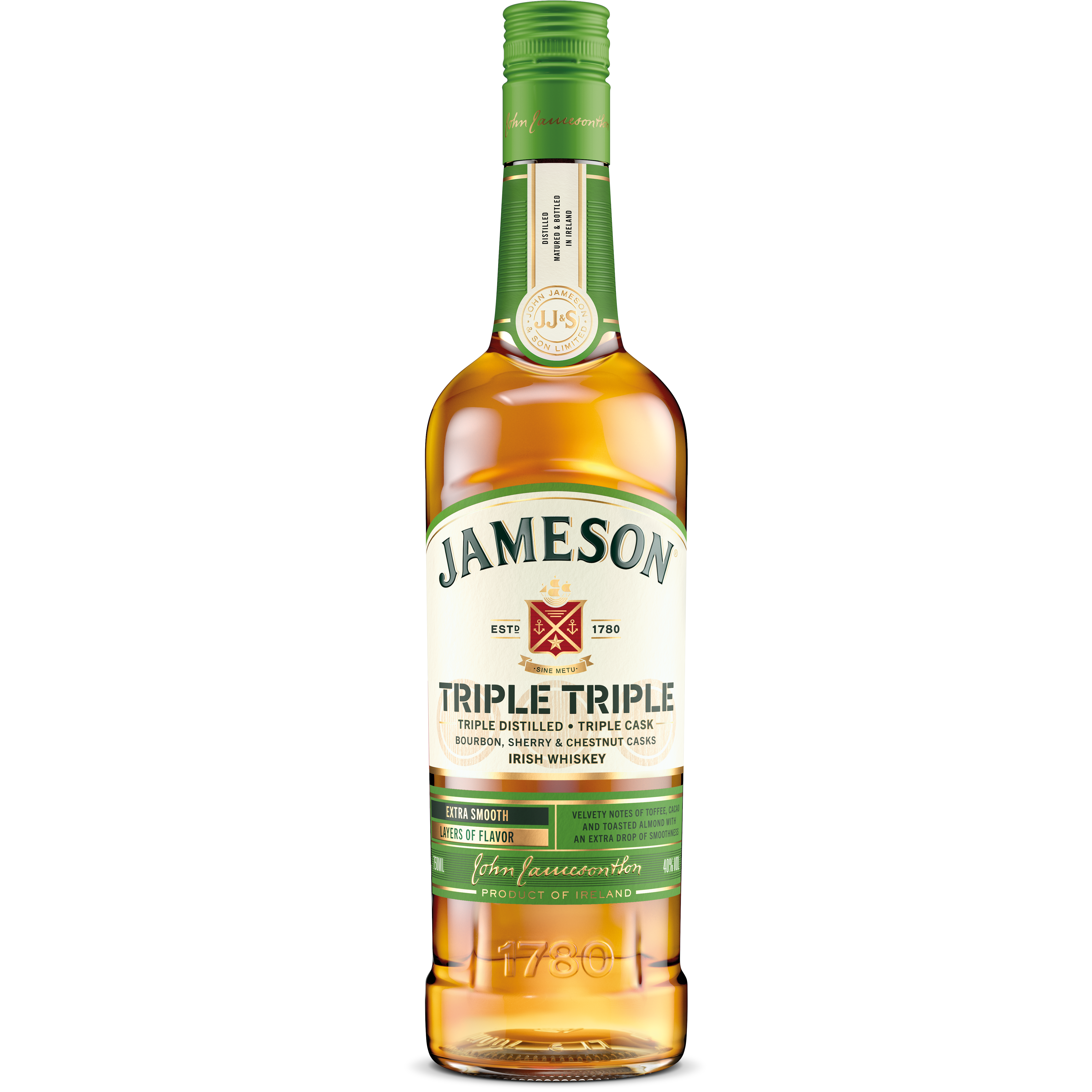 John Jameson founded his distillery in Dublin in 1780 to realise his ambition of making the highest quality whiskey possible. Today Jameson is still made in our Single Distillery in Midleton, Co Cork, Ireland following our founder's tradition of using the finest ingredients and triple distillation to achieve our signature smoothness.