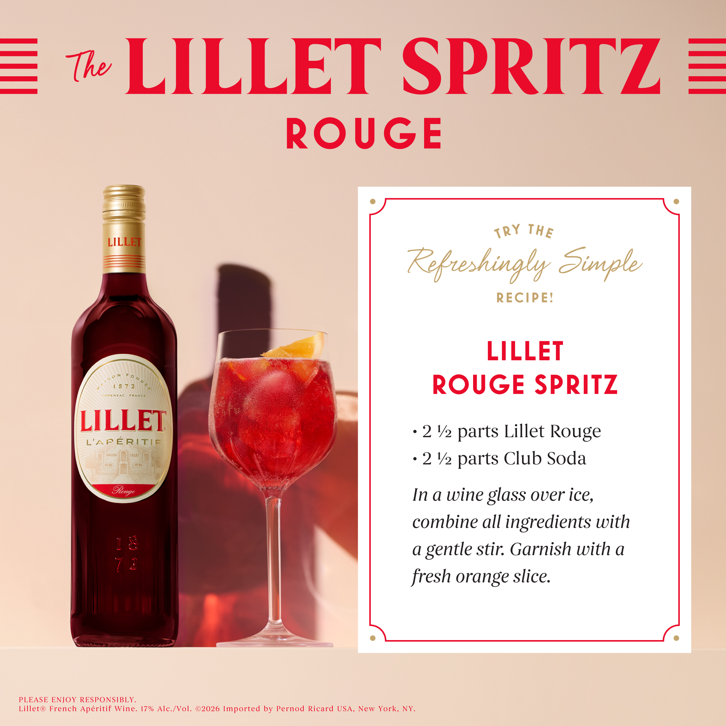 - ITUMELE KA BOIKARABELO: Botlolo nngwe le nngwe ya 750ml ya Lillet Rouge Aperitif ke 34 proof, 17% ABV. Tsweetswee nwa ka boikarabelo