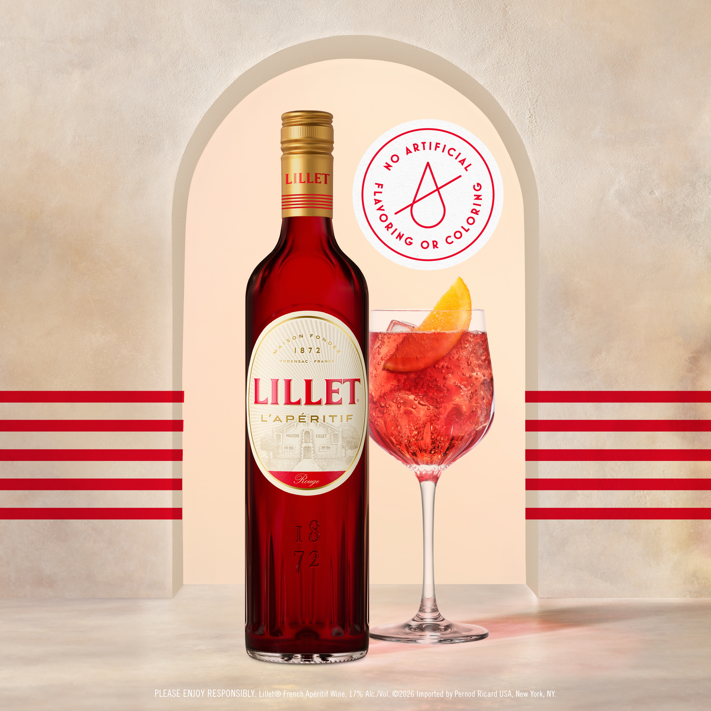 - ITUMELE KA BOIKARABELO: Botlolo nngwe le nngwe ya 750ml ya Lillet Rouge Aperitif ke 34 proof, 17% ABV. Nwa ka boikarabelo